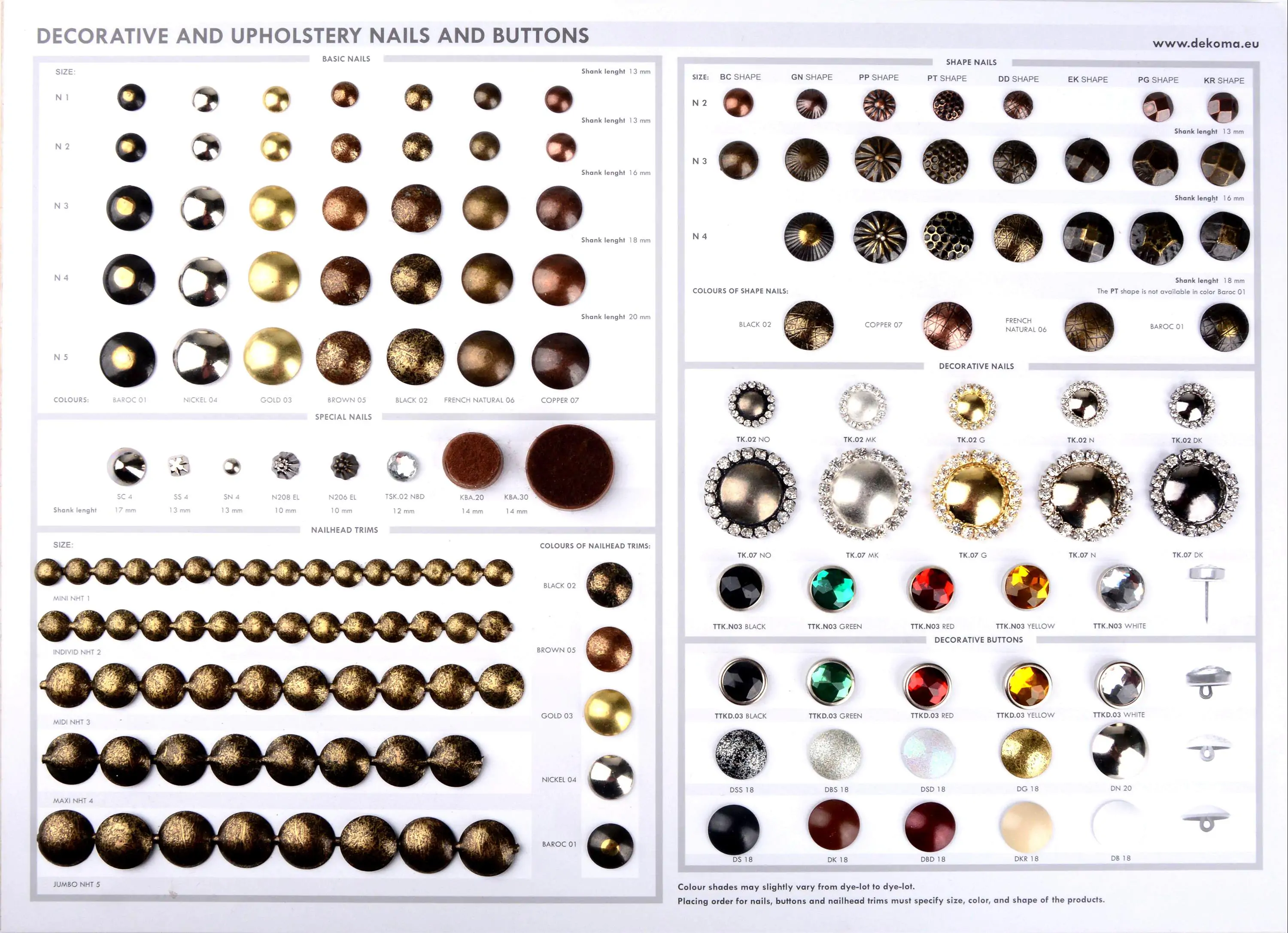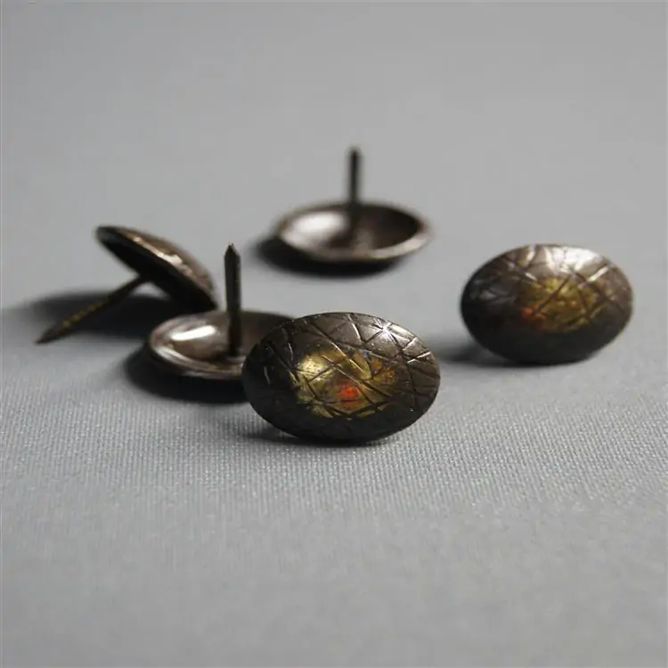 GWOŹDZIE N3 PT are decorative upholstery nails from the SHAPES collection. Their heads, 16 cm in diameter, resemble the structure of a dragonfly's eye. They will be of great use in restoration of antique furniture, and production of quilted headboard elements and Chesterfield-style furniture. The products are available in four interesting colour sets. Nails are an interesting alternative to upholstery cords, often used by upholsterers. When placing an order, please remember to specify the size, colour and shape of the product.