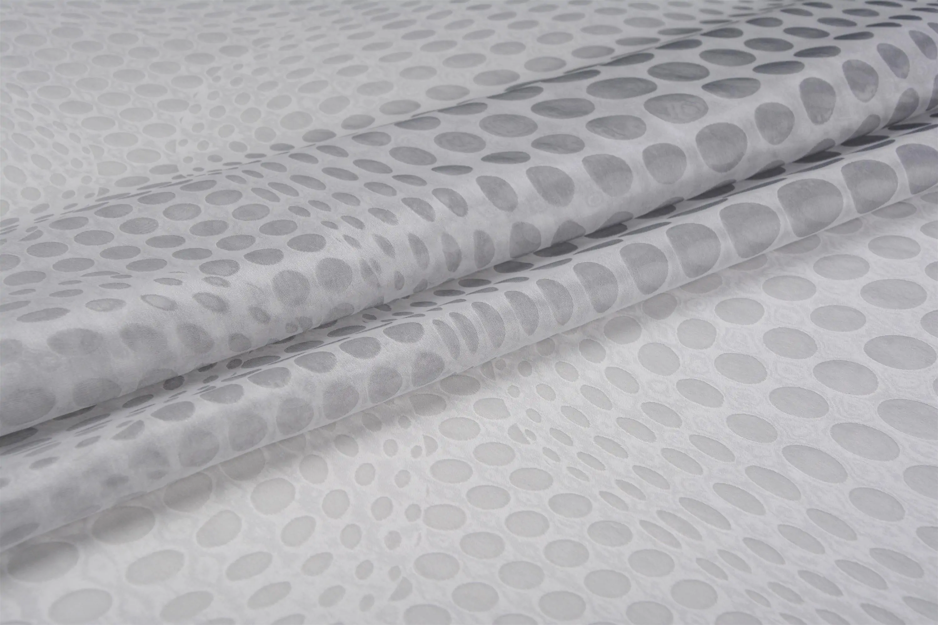 Transparent decorative fabric with a geometric pattern in the op-art style. Double-sided, glossy in economic height. Perfect for creating impressive window decoration. The collection is complemented by METAL haberdashery collection.