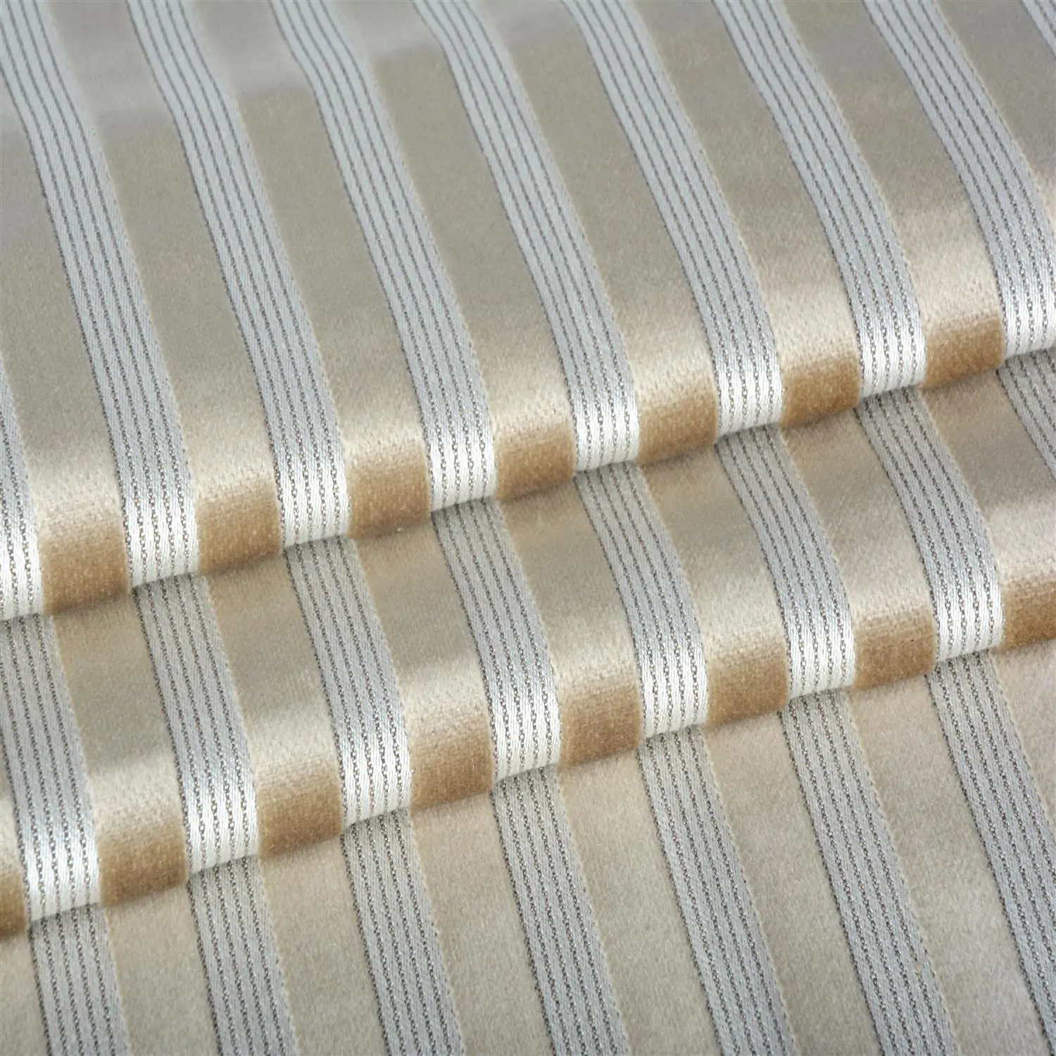 Jacquard woven upholstery plush with exceptionally noble surface with an elegant sheen. Decorated with classic pattern of stripes. Available in a range of faded browns and interesting greens. Trends 2013: Craft lover