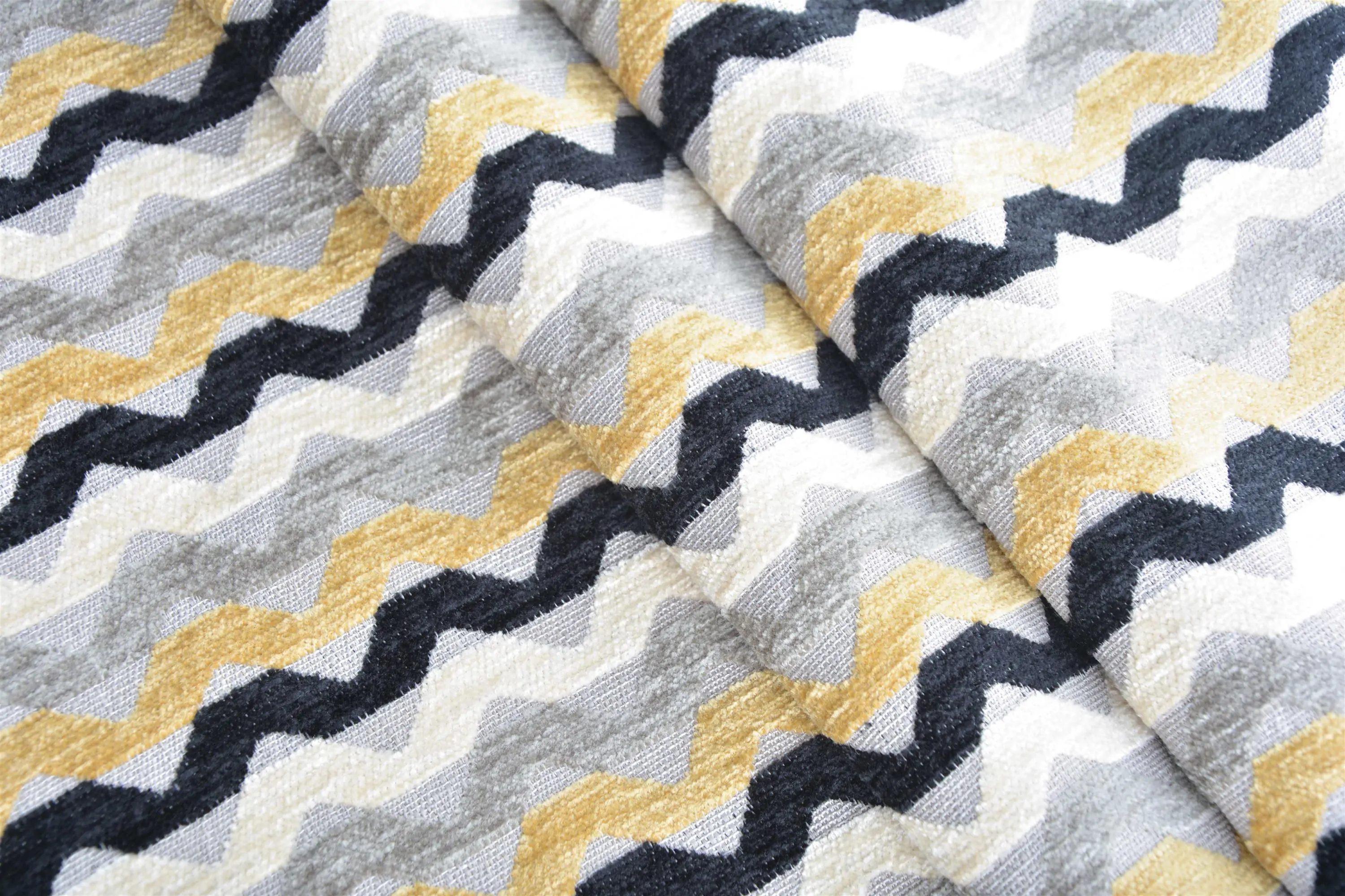 Odyn is an upholstery fabric with a geometric design resembling waves. Similarly to the Hades fabrics, it is available in two colours: smart black with yellow, and vibrant pastels. It is a great solution for furniture upholstery and interior decorations. Washable and highly resistant to light, the fabric is very practical and user-friendly. It goes well with the plain Linthic coordinate from the same collection.