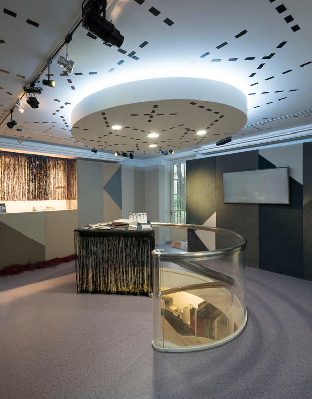 Rented specially for the event, the interior of the Art Cube gallery in Paris was decorated with TARA. Walls have been upholstered in Alcantara and the pattern covered the floor and ceiling, what contributed to the mesmerizing effect immortalized in the pictures.