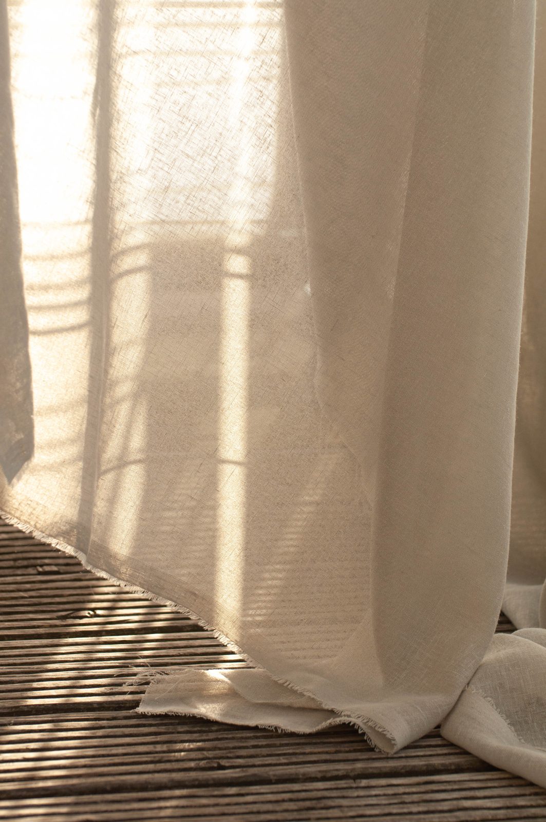 Strong and durable linen with a thicker thread and denser weaving is superb as an upholstery fabric, as any signs of its wear and tear do not ruin, but rather add noble charm to the furniture. Easily drapable linen blends with thinner threads will be a great choice for virtually any interior when used in curtains, shades, semi-transparent panels, and natural, airy veils. Such a play with textures often turns out to be the most important element of the interior’s amicable ambience. Lightweight and ethereal linens are an especially good match for summertime spaces, where we seek airiness and freshness. By contrast, denser linen curtains, falling heavily on the floor and blocking the light, provide shelter and thermal insulation during scorching hot days. Regardless of their function, linen window blinds give the interior a very sensuous character and create a mellow mood of summer mornings, days and evenings.