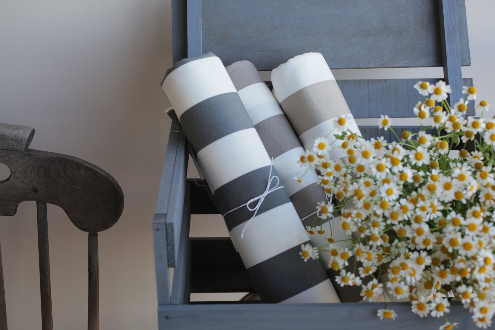 Thus, the striped pattern became famous and popular. Soon, it was no longer associated only with sailing, but also with vacations as well as a light, airy and elegant style. After becoming popular in fashion, it became part of interior design as an extraordinary, fresh decorative motif and has remained in use to this day. Over time, wide stripes on a white background became available in a number of colours (first red, then yellow). Today, they are considered timeless. They never go out of fashion. They are constantly used in interiors in all shapes and sizes. The number of variants is truly uncountable.
