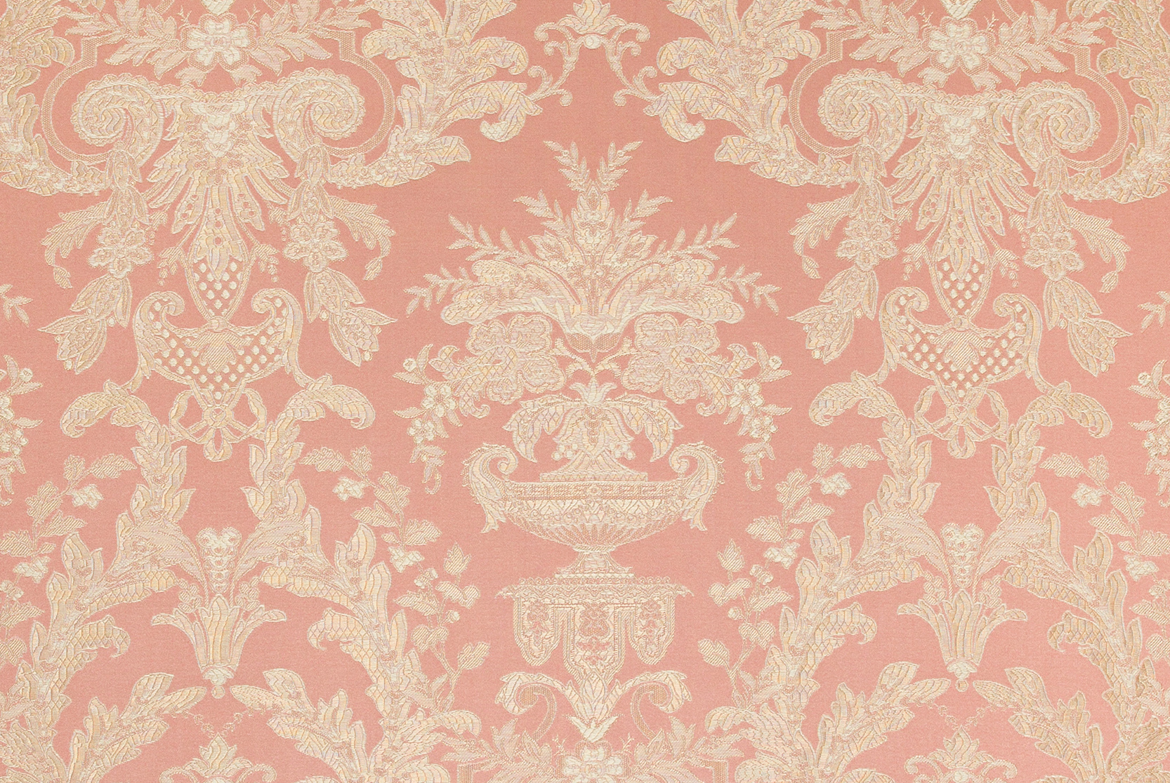 W dekoracyjnym, rozbudowanym wzorze tkaniny Corelli możemy dopatrzeć się między innymi antycznych waz z bukietami kwiatów, kokard, roślinnych gałązek, palmet, wolut. Symetria, charakterystyczna dla klasycyzmu, porządkuje to bogactwo elementów.