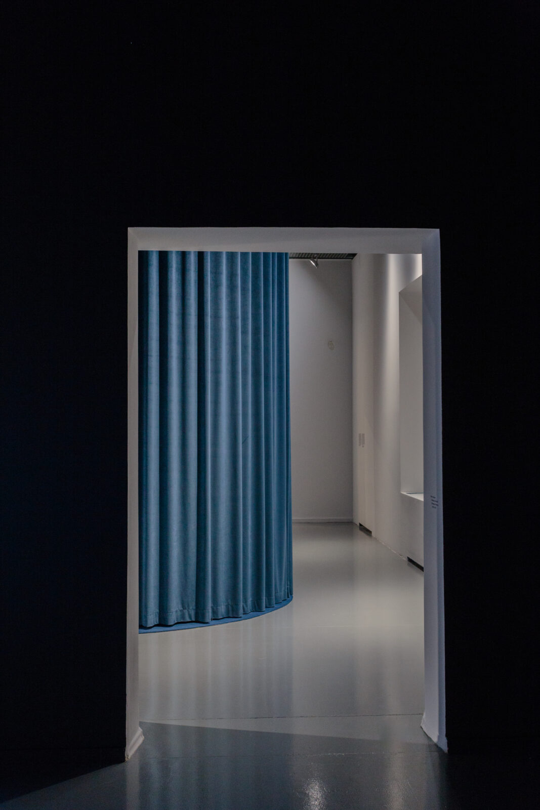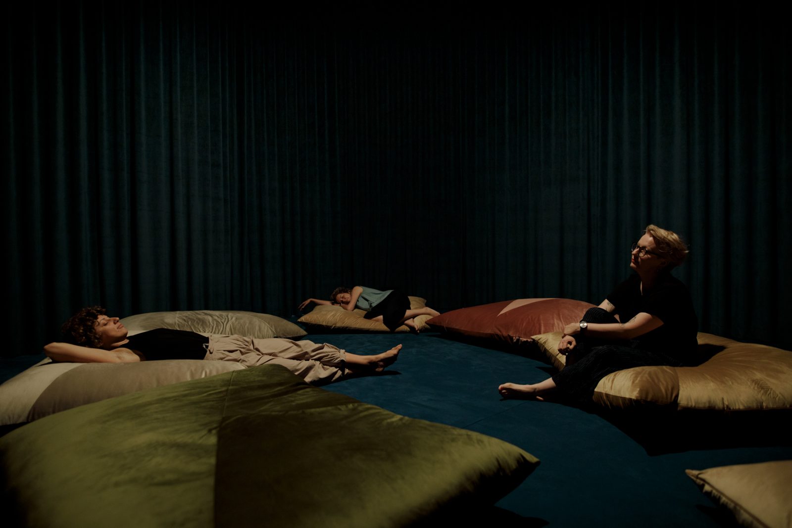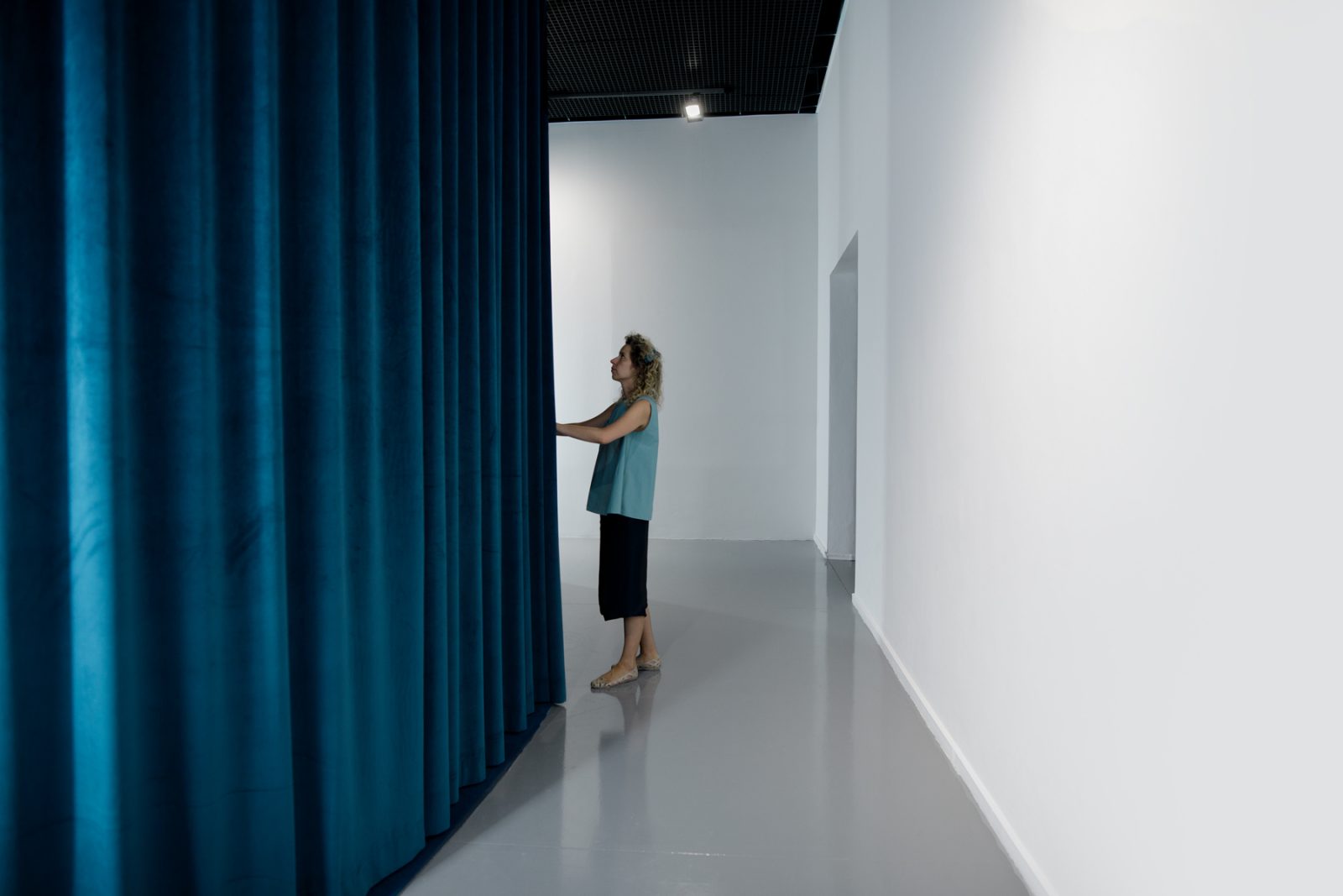 Instalacja Karoliny Grzywnowicz w Zamku Ujazdowskim ma formę symbolicznego namiotu, wewnątrz którego można posłuchać palestyńskich kołysanek. Ponad 100m granatowego weluru Spring Navy stworzył intymną przestrzeń, w której można zasiąść na wielkich poduszkach, uszytych specjalnie na tę okazję przez markę Miuki z tkanin Spring i Jason, by posłuchać w skupieniu uchodźczych pieśni.