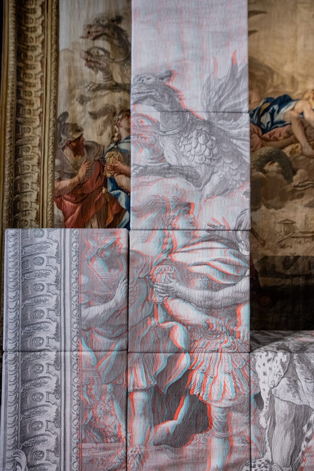 W drugim drugiej komnacie, artystka za pomocą nadruku cyfrowego przenosi fragmenty scen rodzajowych z gobelinów na kubiki obite Alcantarą. Obraz nadruku został przeobrażony z dwuwymiarowego na taki, dzięki któremu, za pomocą specjalnych okularów zwiedzający mogą „odkodować” obrazy utkane na gobelinach.
