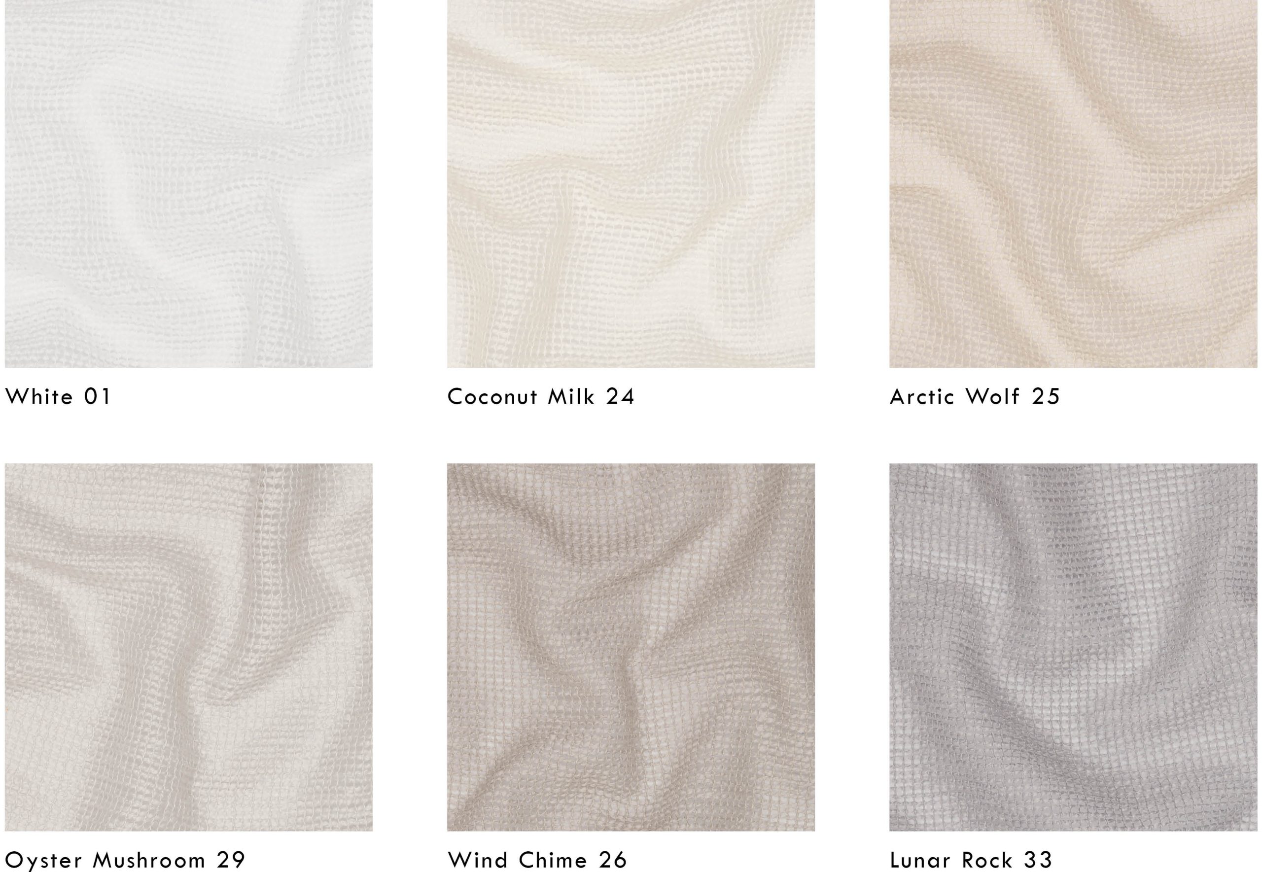 Cascata dostępna jest w sześciu kolorach: są to złamane odcienie bieli, kość słoniowa i jasna szarość i biel.