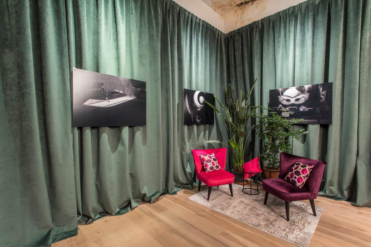 Zaintrygowała nas koncepcja wykorzystania wnętrz zabytkowej willi, w której obecnie mieści się również niezwykłe miejsce jakim jest Muzeum Książki Artystycznej, a także zakład typografii. Nietypową rolę miały w wydarzeniu odegrać tkaniny, co skłoniło nas do wzięcia udziału w wydarzeniu. Ostatecznie 120m materiału Dekoma Charles, w postaci kotar wysokich na ponad 3,5m, otoczyło jedno z pomieszczeń i stworzyło tło dla wystawy zdjęć Przemo Łukasika.