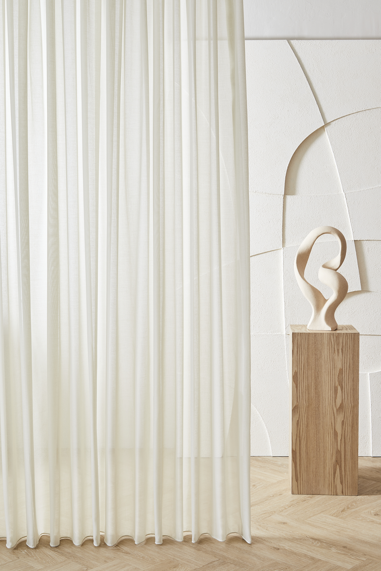 Ta trudnopalna, półtransparentna tkanina choć wyprodukowana w 100% z recyklingowej, poliestrowej przędzy jest bardzo naturalna w wyglądzie i chwycie. Gama 25 odcieni bieli, kości słoniowej, beżu i szarości pozwala na stworzenie ciekawych okiennych dekoracji.