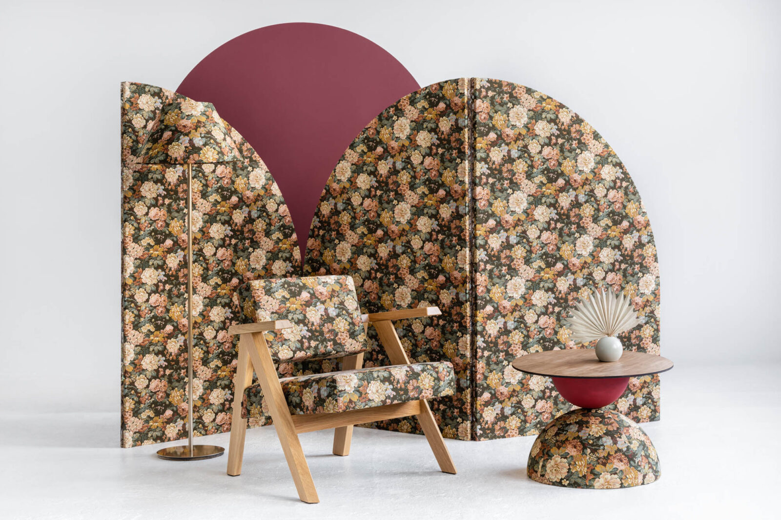 Przygotowując prezentację gobelinów w ramach Arena Design 2020 chcieliśmy też zwrócić uwagę na ich zgodność z innymi aktualnymi trendami, takimi jak np. maksymalizm. Projektanci i styliści od kilku sezonów nie obawiają się wzorów, a wręcz je nawarstwiają, by osiągnąć intrygujący, nasycony efekt. Często zdarza się, że w jednym wnętrzu ten sam wzór pojawia się na różnych powierzchniach: ścianach, meblach, dekoracyjnych tekstyliach przepływa z jednego obiektu na drugi, zacierając granice i igrając naszą percepcją.