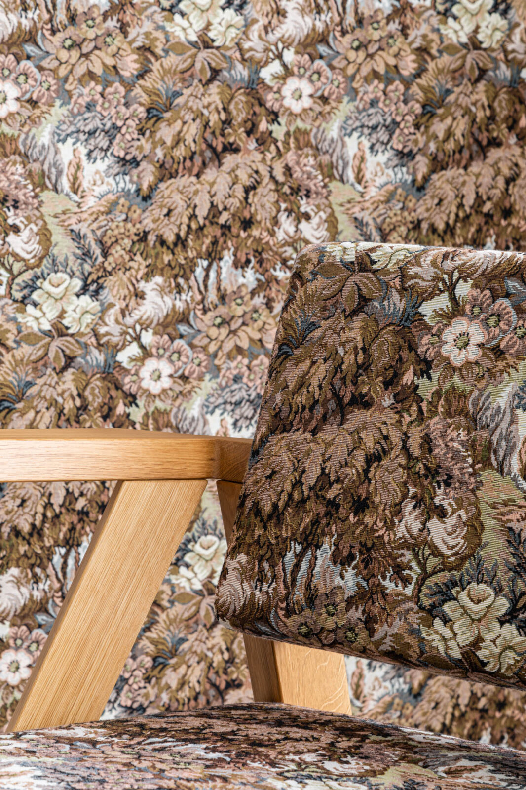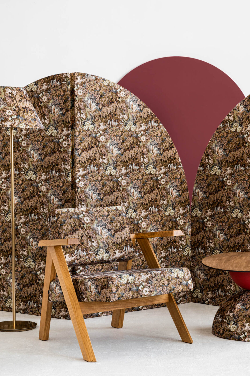 Przygotowując prezentację gobelinów w ramach Arena Design 2020 chcieliśmy też zwrócić uwagę na ich zgodność z innymi aktualnymi trendami, takimi jak np. maksymalizm. Projektanci i styliści od kilku sezonów nie obawiają się wzorów, a wręcz je nawarstwiają, by osiągnąć intrygujący, nasycony efekt. Często zdarza się, że w jednym wnętrzu ten sam wzór pojawia się na różnych powierzchniach: ścianach, meblach, dekoracyjnych tekstyliach przepływa z jednego obiektu na drugi, zacierając granice i igrając naszą percepcją.