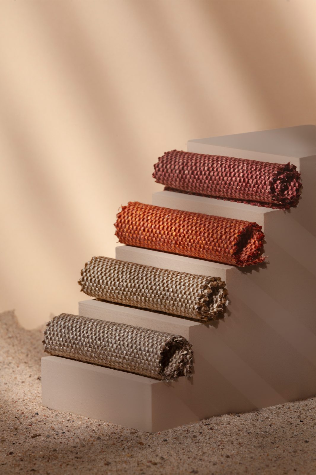 Gobi naśladuje wygląd lnu o grubym splocie. Osnowa jest odrobinę cieńsza niż wątek i ma nieco inny odcień – daje to wyraźną fakturę i melanżowy efekt wizualny. Dzięki temu Gobi jest praktyczna – nie widać na niej zabrudzeń czy zagnieceń. Z wyglądem i fakturą tkaniny koresponduje jej obszerna, licząca aż 26 odcieni gama kolorystyczna. Nawiązuje ona do barw natury, a szczególnie do pustynnych, piaszczystych i kamienistych przestrzeni, gdzie dominują zgaszone beże, ciepłe brązy, szarości.