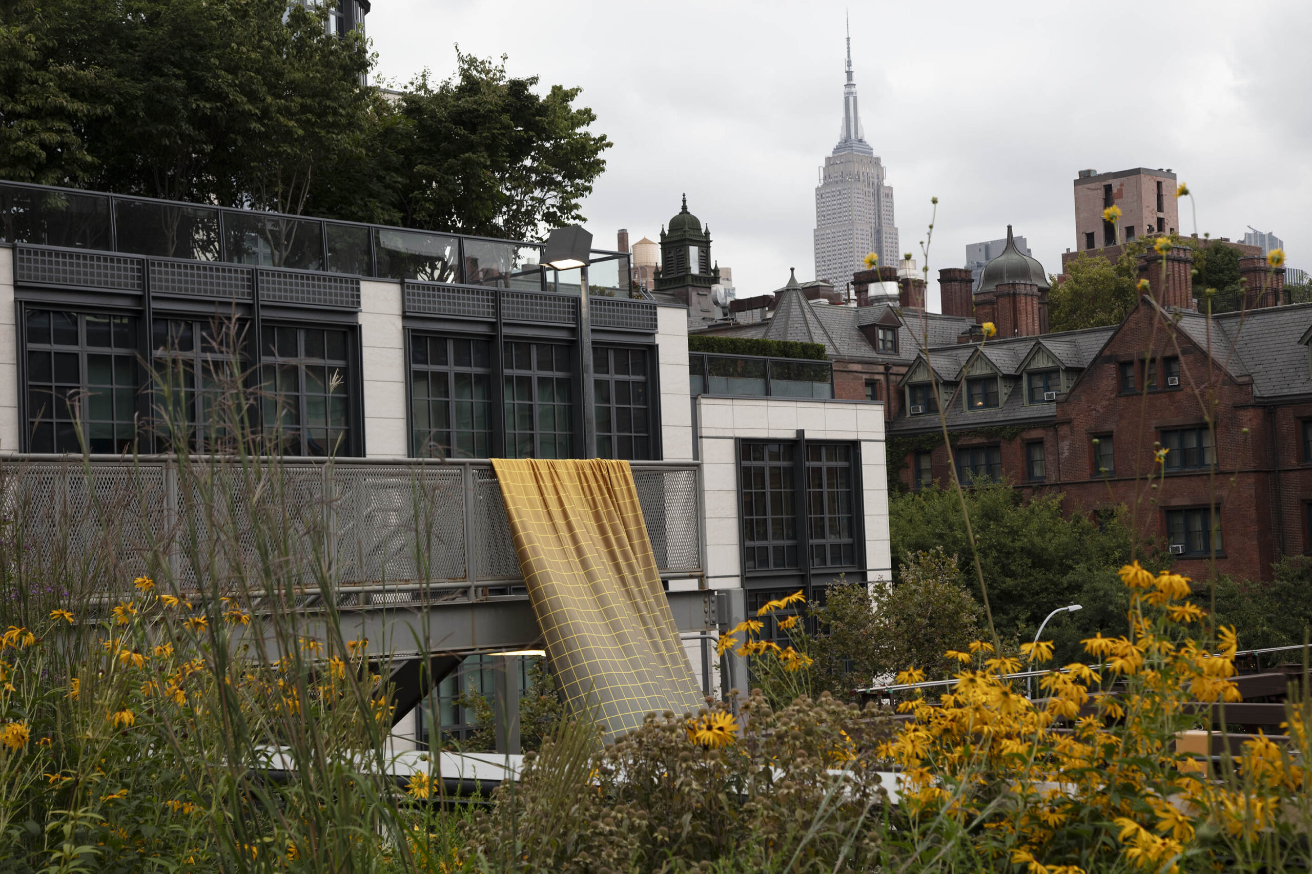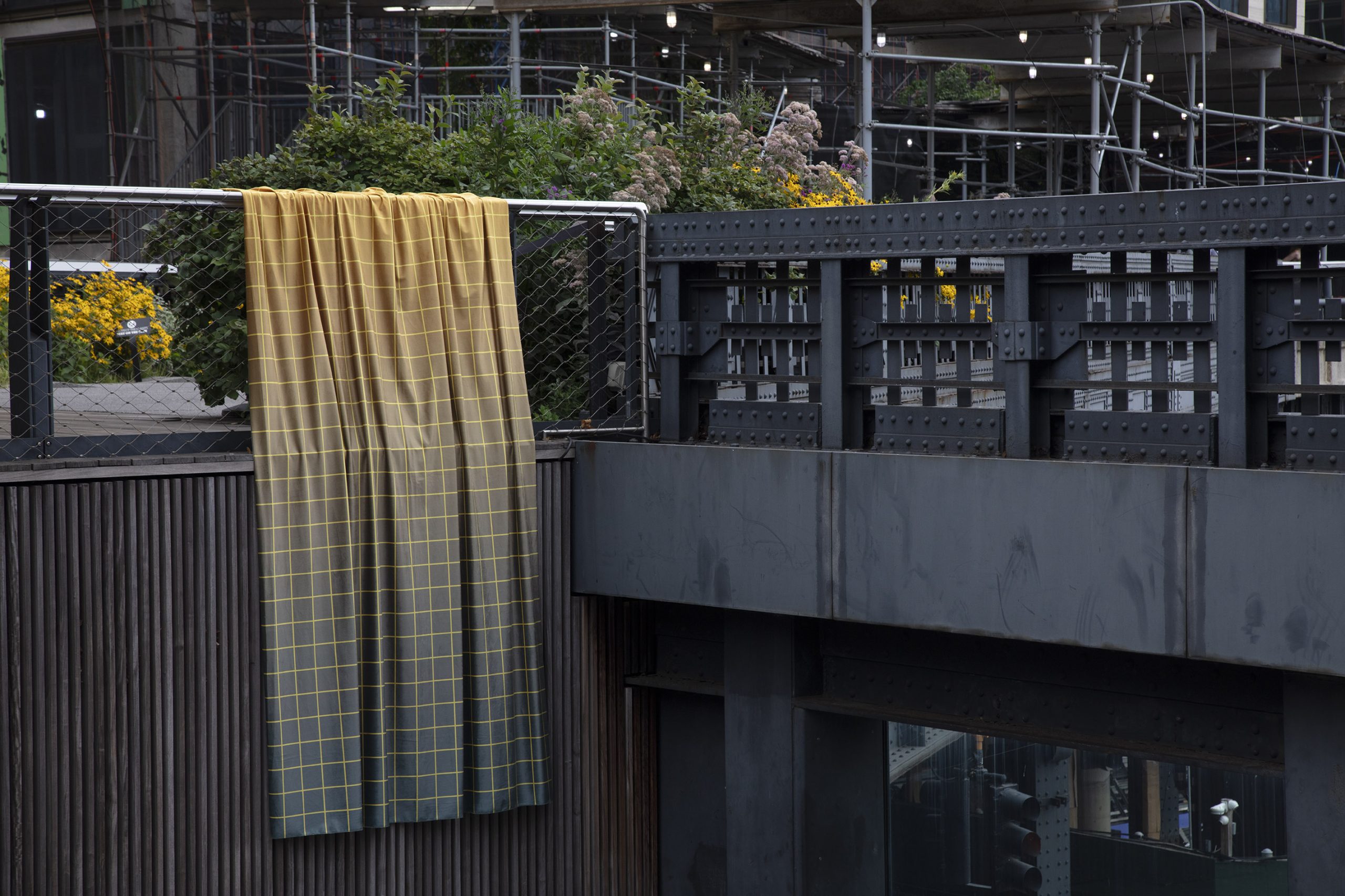 Regularne podziały szklanych fasad wieżowców łączą się płynnie z geometryczną siatką wzoru. Sama konstrukcja estakady High Line również pojawia się jako element scenografii sesji. Park High Line to unikalny projekt rewitalizacji miejskiej przestrzeni – efekt pracy studia architektonicznego Diller Scofidio+Renfro oraz wybitnych projektantów zieleni: Pieta Oudolfa i Jamesa Cornera. Otwarty w 2009 roku, szybko stał się jedną z najważniejszych atrakcji turystycznych Nowego Jorku, przyciągając corocznie kilka milionów zwiedzających zafascynowanych fuzją architektury i naturalistycznych nasadzeń roślinności.