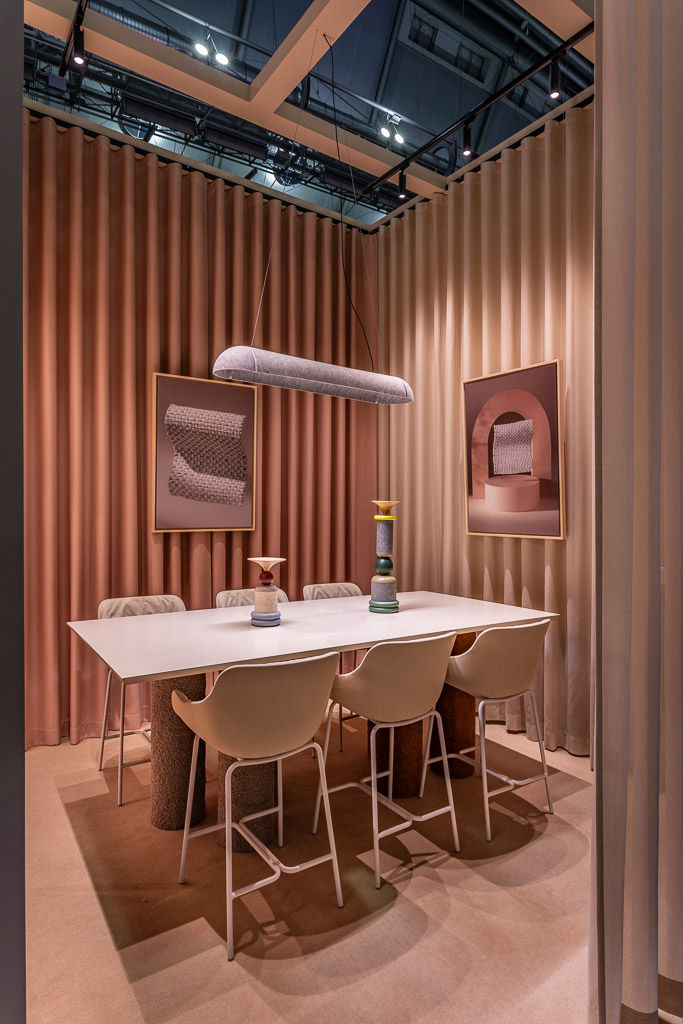 W tym roku postanowiliśmy też zaprezentować jak najwięcej polskiego designu. Samo stoisko zaprojektowało młode, wrocławskie studio Utul. W wyposażeniu wykorzystaliśmy meble Noti, Nurt i MDD, a także krzesła vintage z lat 60. projektu Teofila Hałasa. Stoisko oświetlały lampy marki Chors oraz zaprojektowane przez pracownię Kabo & Pydo lampy marki Flexxica. Natomiast wśród dekoracji znalazły się wyprodukowane w technologii druku 3D wazony i świeczniki marki Utul oraz drewniane totemy, które dla Noti stworzył poznański kolektyw Supergirls Do Design.