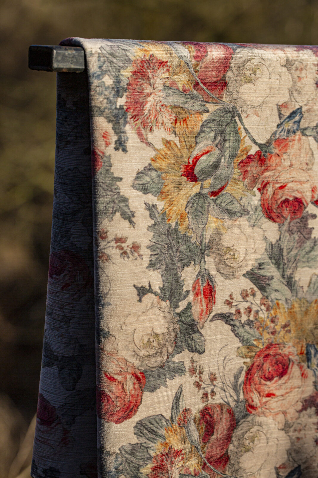 Roseto zdobi nadruk bogatego, kwiatowego wzoru. Duże, rozkwitłe róże uzupełniają liście, pąki oraz inne kwiaty w różnych kolorach. Możemy się tu dopatrzeć goździków, powoi, maków oraz gałązek bzu. Tkanina dostępna jest w 5 wariantach kolorystycznych. Pojawia się w nich róż, beż, pastelowy błękit, niebieski, złocisty, jasnoszary, oliwkowa zieleń i granat. Bogactwo i duża skala wzoru Roseto sprawia, że najlepiej będzie się prezentował na jednym elemencie we wnętrzu: jako obicie sofy czy fotela, zasłony w oknie czy poszewki poduszek.
