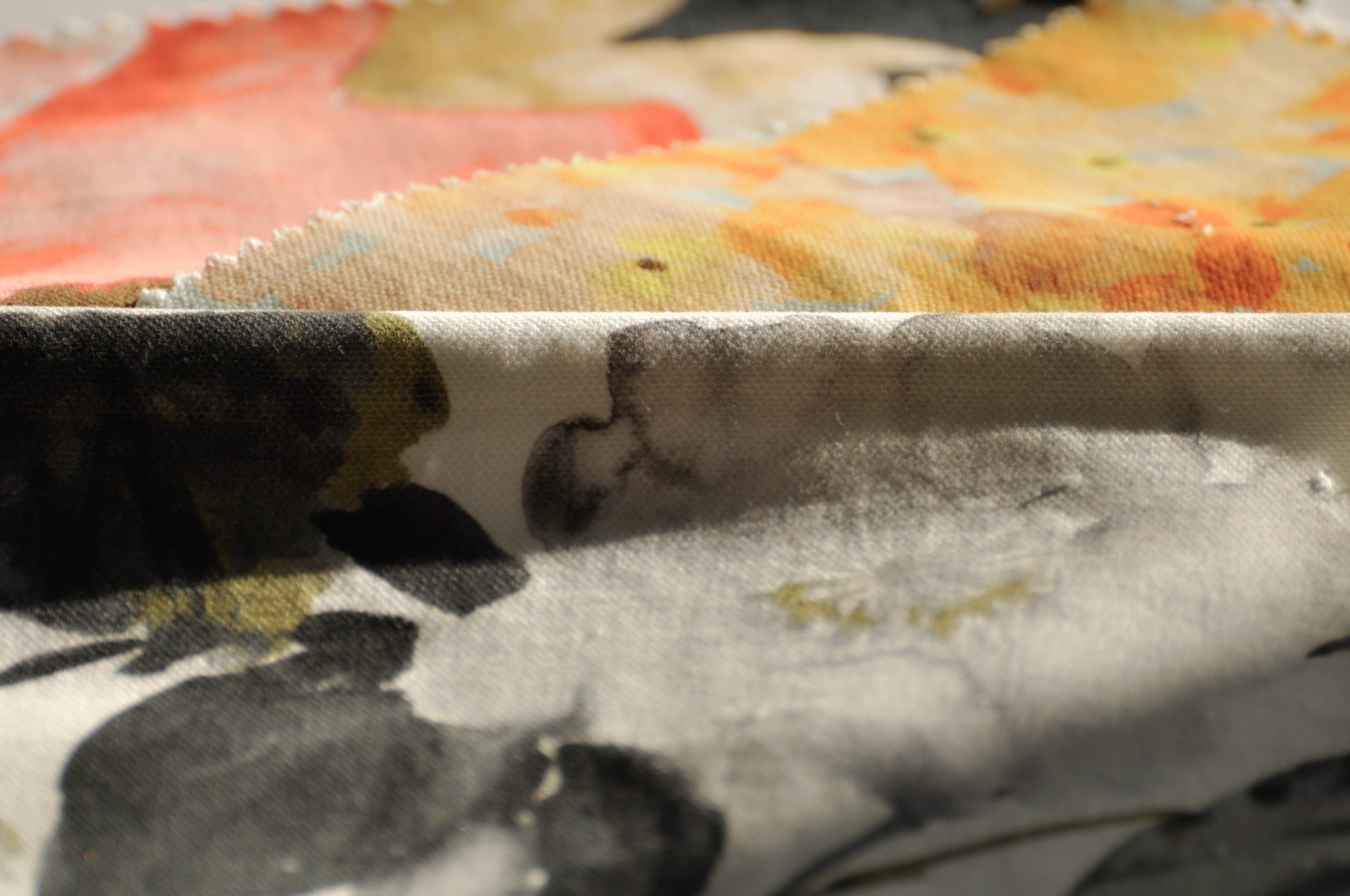 Akwarela to technika, która polega na malowaniu rozcieńczonymi w wodzie pigmentami na celulozowym papierze, który szybko wchłania wodę. Ten sam efekt sprawdza się w przypadku tkanin bawełnianych, których matowość podkreśla akwarelowy charakter kwiatowego deseniu. Kształty kwiatów w tym przypadku są rozmyte, często zlewają się, tworząc bardziej wrażenie kwiatowych kompozycji, niż ich wierne odwzorowanie. Przedstawione rośliny pozbawione są cyzelowanych detali.