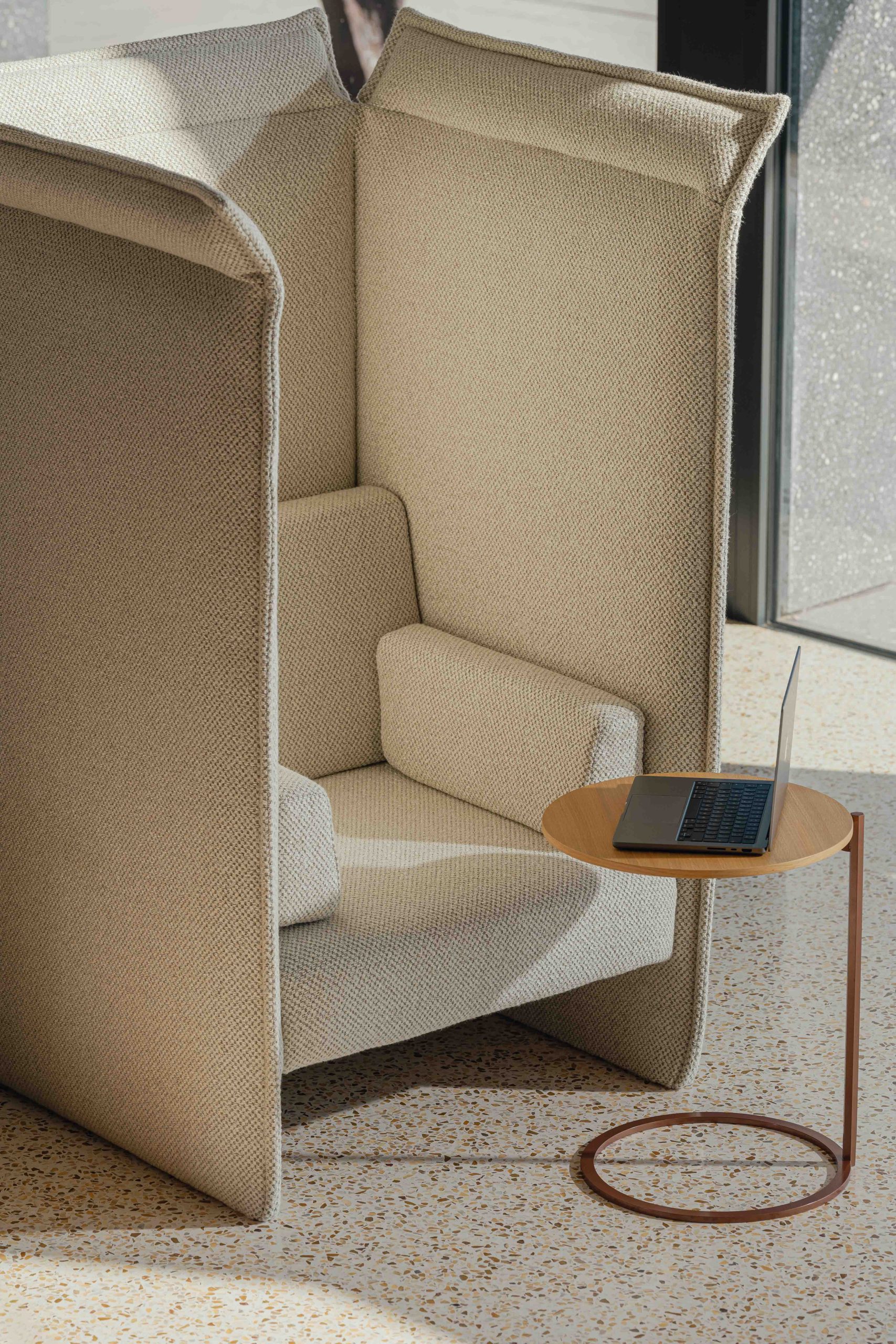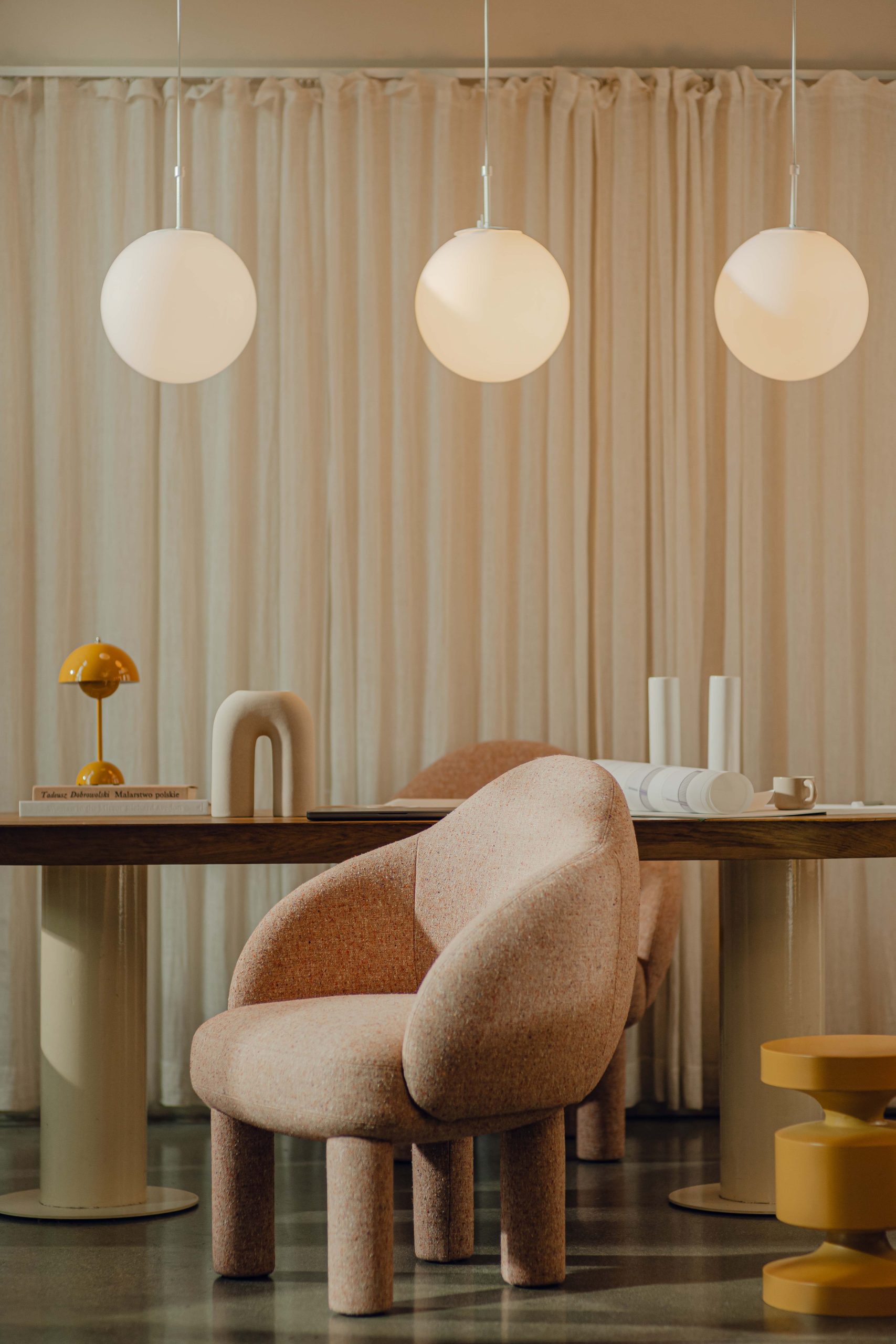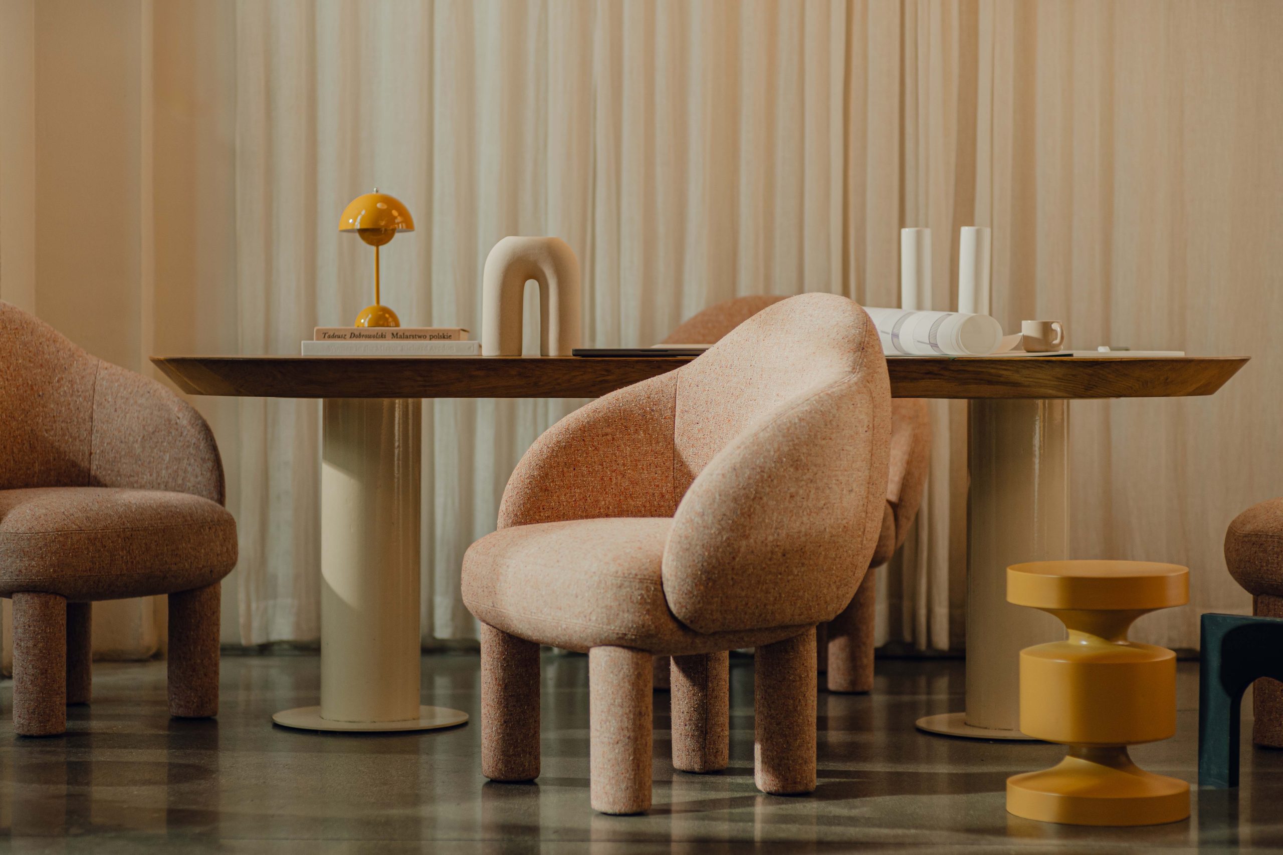 Tkanina Mura dopasowała się do charakteru modułowego systemu siedzisk Organic, który zaprojektowała Izabela Brola-Cieśluk. System składający się z kilku nieregularnych, asymetrycznych brył można zestawić w jeden, spójny, monolityczny mebel bądź wykorzystać jako pojedyncze siedziska.