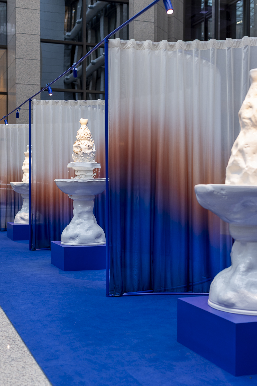 Inspiracją do stworzenia „We Are The Weather” była książka Safrana Foera „We Are The Weather: Ratowanie planety zaczyna się od śniadania” (2019). Instalacja składa się z trzech elementów, które podkreślają pilną potrzebę solidarności i współpracy w stawianiu czoła globalnym wyzwaniom. Ceramiczne fontanny opowiadają historię zmian klimatycznych, kobaltowe „łapacze wody” przypominają o tym jak cenna i życiodajna jest woda, a płytki ceramiczne ilustrują jej niedobór. Oprawą instalacji jest aranżacja stworzona przez projektantki ze studia Supergirls Do Design. Połączyły one ceramiczne obiekty Alicji Patanowskiej płynną linią, nawiązującą do wody. Fala, pojawiająca się w kształcie wykładziny, elementach konstrukcji i delikatnej, tkaninie Piuma, zadrukowanej w specjalnie zaprojektowany gradient, prowadzi widzów wzdłuż lobby Justus Lipsius, nadając ekspozycji kierunek.