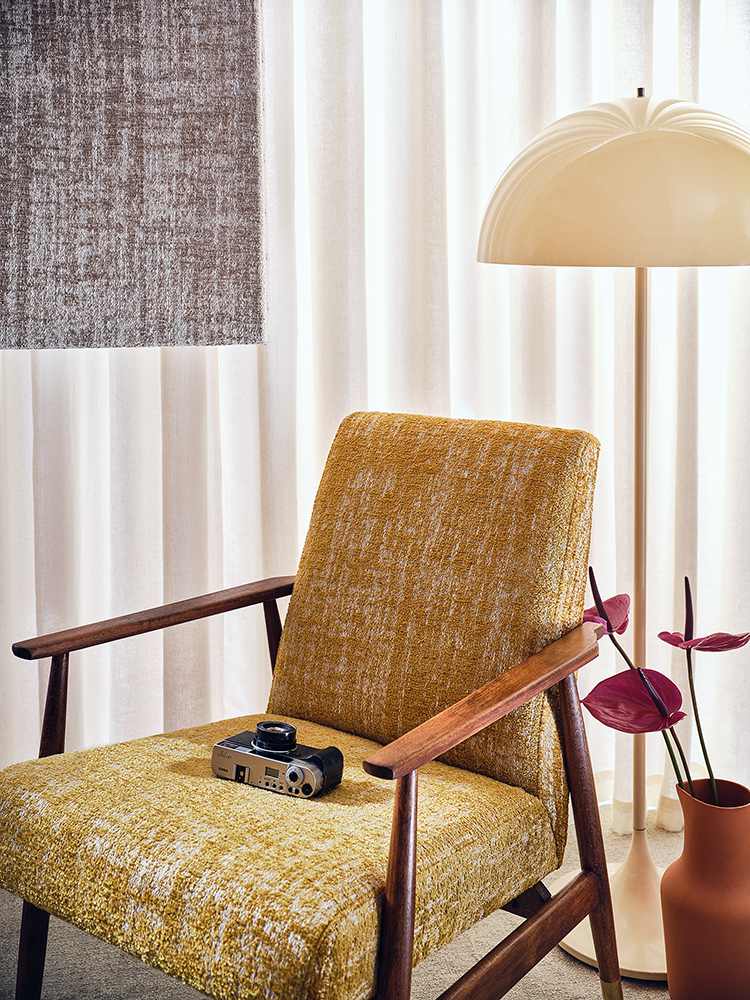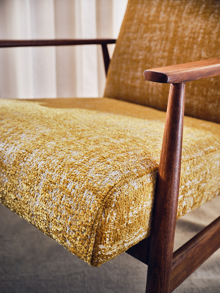Przytulności dodatkowo dodają tym tkaninom teksturowane efekty boucle. Chętnie wykorzystuje się też te tkaniny, których design opiera się na wrażeniu zużycia, z imitacjami miejscowych przetarć. W efekcie aranżacja wnętrz w stylu retro jest świetną okazją do zabawy trendami, wzorami i fakturami.