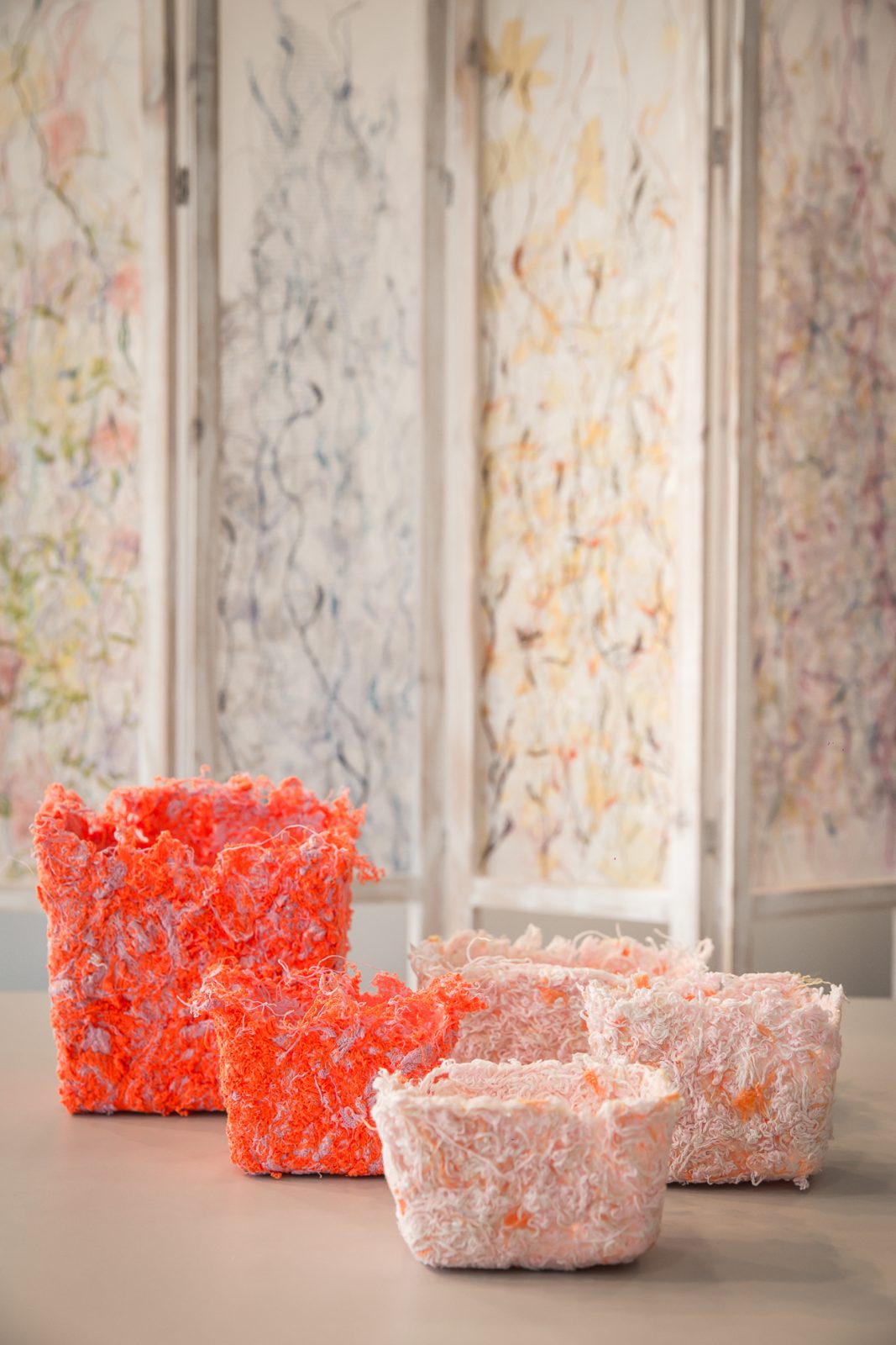 Drugą odsłonę wystawy z cyklu Sploty w całości poświęciliśmy wyrobom tekstylnym stworzonym w ramach ostatniej edycji łódzkiego EcoMade Festival. Zorganizowany przez Akademię Sztuk Pięknych im. Władysława Strzemińskiego w Łodzi festiwal koncentruje się na promowaniu działań związanych z upcyclingiem odpadów poprodukcyjnych, czyli przetwarzaniem ich w celu otrzymania nowego produktu o wyższej funkcjonalności.