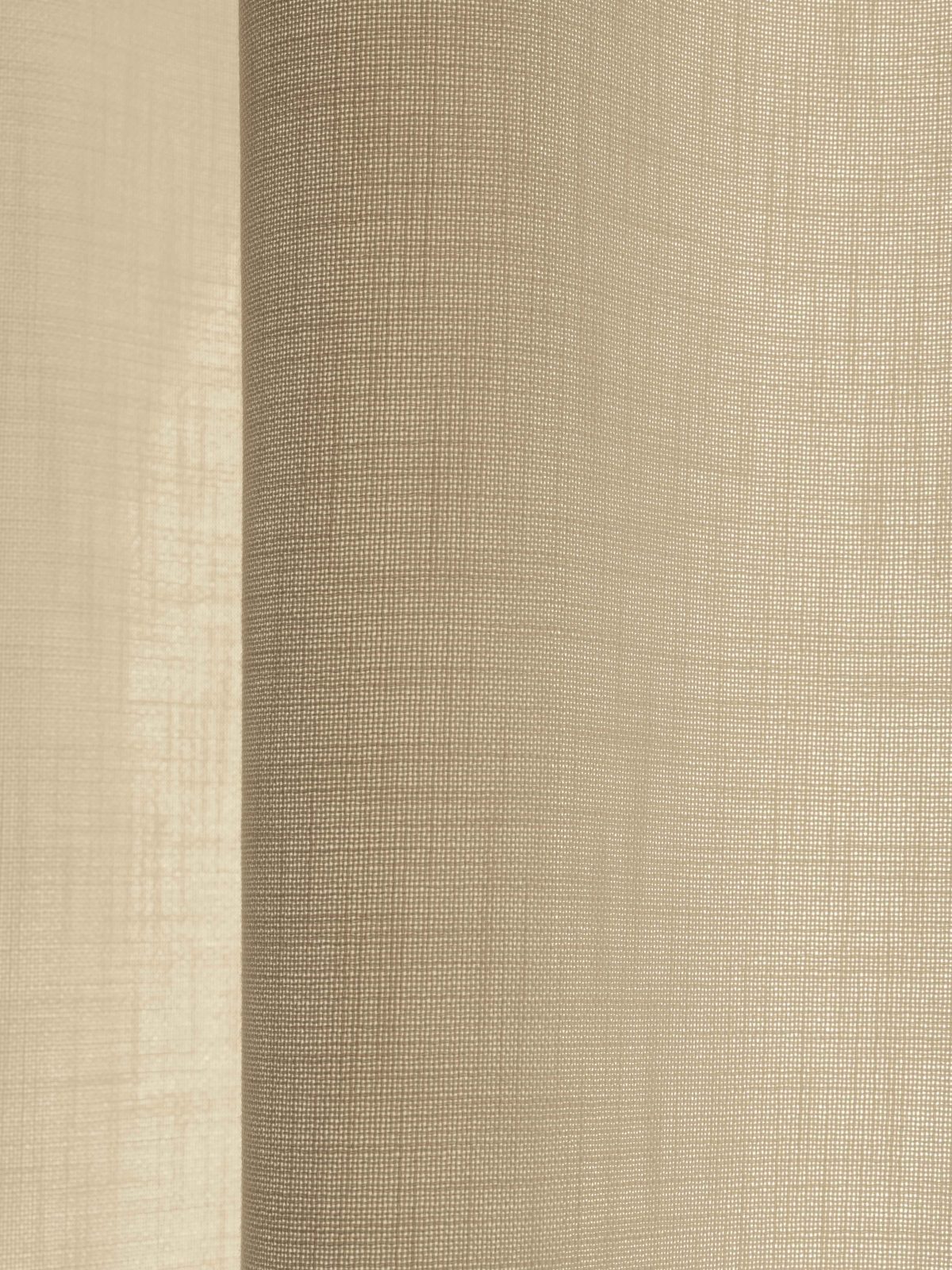 Tela ma gładki, regularny płócienny splot, matowe wykończenie i drobną strukturę. Choć wykonana jest w 100% z włókien poliestrowych, ma bardzo naturalny wygląd, przypominający płótno lniane lub dżins. Dzięki swojej grubości dobrze się układa w draperiach i skutecznie chroni przed światłem słonecznym, zapewnia prywatność. W aranżacjach okiennych wystarczy zastosować ją solo, ale można ja też połączyć z gładkimi, naturalnie wyglądającymi firanami. Szerokość 305 cm pozwala ją wykorzystać nawet w wysokich, przestronnych wnętrzach.