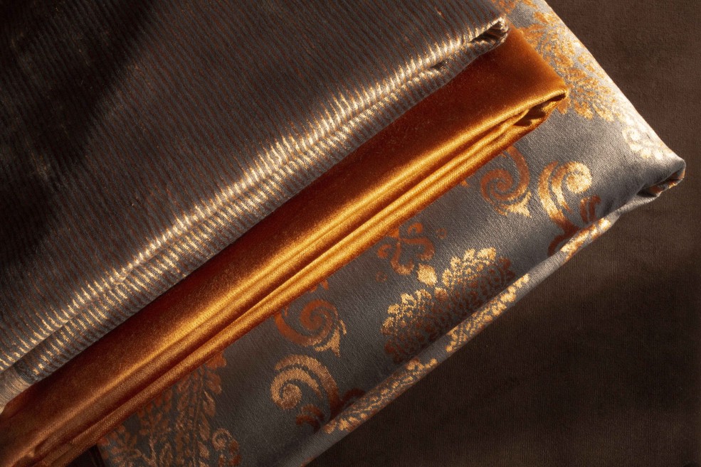 Modern Classics to kolekcja tkanin, które zaskakują połączeniem klasycznych wzorów i nowoczesnych technologii. Pochodząca z niej rodzina welurów Adele/ Nicole/ Danae / Judith to 4 warianty cyfrowych nadruków w odcieniach starego złota i miedzi. Połyskliwe metaliczne wzory ciekawie kontrastują z szarymi, szmaragdowymi, turkusowymi czy piaskowymi tłami. Nieregularnie rozmieszczone kropki, subtelne paseczki, rozbudowane barokowe ornamenty i organiczne, malarskie plamy – te cztery motywy i powtarzalne w całej rodzinie welurów połączenia kolorystyczne pozwalają na tworzenie intrygujących kompozycji oraz połączenia z innymi tkaninami, np. gładkim welurowym koordynatem Henry FR.