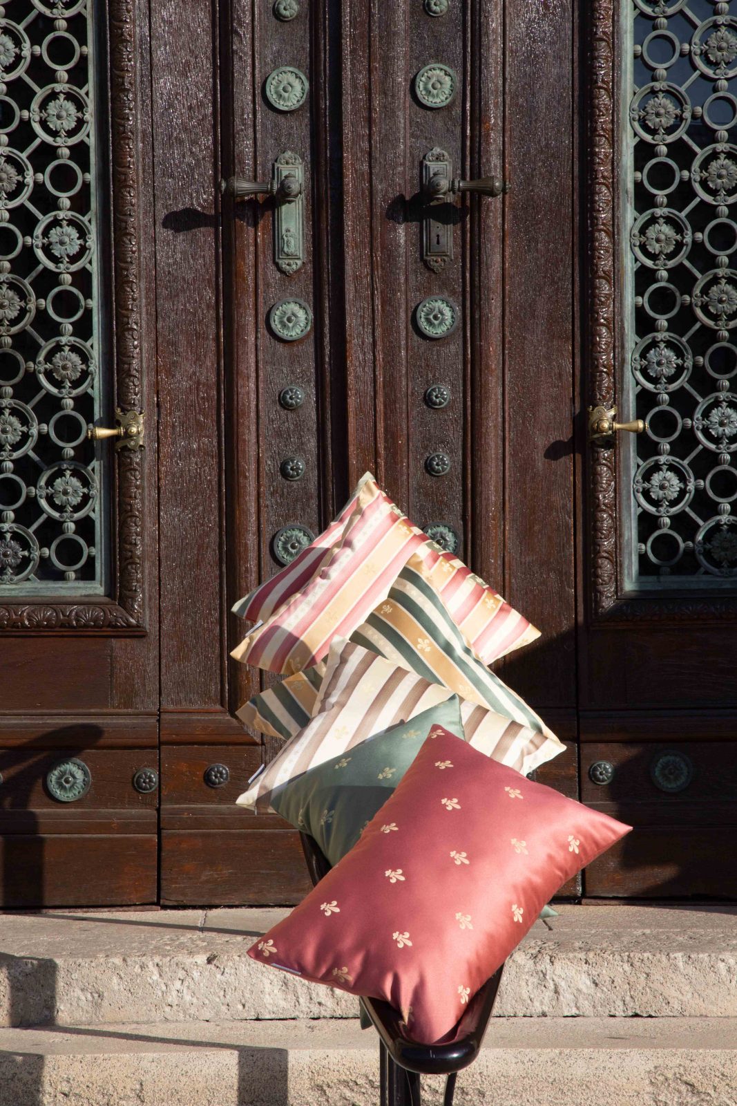 Tkaniny wypełniające wnętrza budynków pełniących szczególną rolę w miastach z silną pozycją monarchii, bardzo często dekorowane były symbolicznymi ornamentami. Do dziś tekstylia dekorowane motywem lilii heraldycznej uporządkowanej w pasach lub rozrzuconej luźno po barwnym, pastelowym tle, które kojarzą się z pałacową powagą i elegancją, wykorzystywane są do wyposażenia i aranżacji stylizowanych wnętrz o klasycznym rodowodzie.
