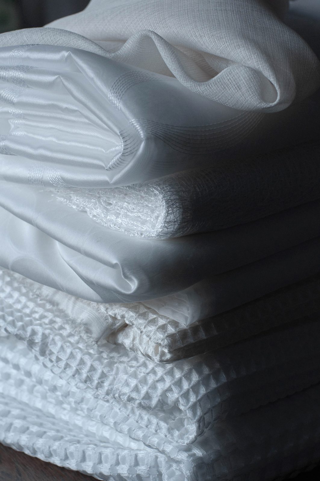 Szczególnie dużo odcieni bieli możemy znaleźć w świecie tekstyliów, a to dlatego, że tekstury i stopień transparentności materiałów wpływają znacząca na nasze postrzeganie. Zabarwione takim samym białym pigmentem włókno, z którego zostanie utkana tkanina, da zupełnie inny efekt w przypadku przędzy bawełnianej, lnianej lub poliestrowej czy wiskozowej. Sposób skręcenia przędzy, rodzaj splotu tkackiego, gęstość materiału czy wreszcie efekt wykończenia, wszystko to każdorazowo da inny odcień bieli. Możliwości te zostały znakomicie wykorzystanie przez przemysł tekstylny w tworzeniu mnogości rozwiązań dla współczesnych wnętrz, szczególnie jeśli chodzi o przesłony okienne, powszechnie nazywane w Polsce firanami. Tkaniny umieszczane w oknach służyć mają intymnemu przysłonięciu wnętrz domów przy jednoczesnym zachowaniu dostępu światła i widoczności tego, co na zewnątrz. Sam tekstylny materiał w tym przypadku zostaje dodatkowo „przefiltrowany” przenikającym przez niego, zależnym od pory dnia i roku, światłem a także ruchem powietrza. Biorąc pod uwagę rozwiniętą dziś technologię, która pozwala na uzyskiwanie różnorakich efektów dekoracyjnych na tkaninach, mamy do wyboru całą masę wzorniczych rozwiązań. Można śmiało założyć, że w tym przypadku naprawdę każdy znajdzie dla siebie coś dostosowanego do jego wymagań użytkowych i upodobań stylistycznych.