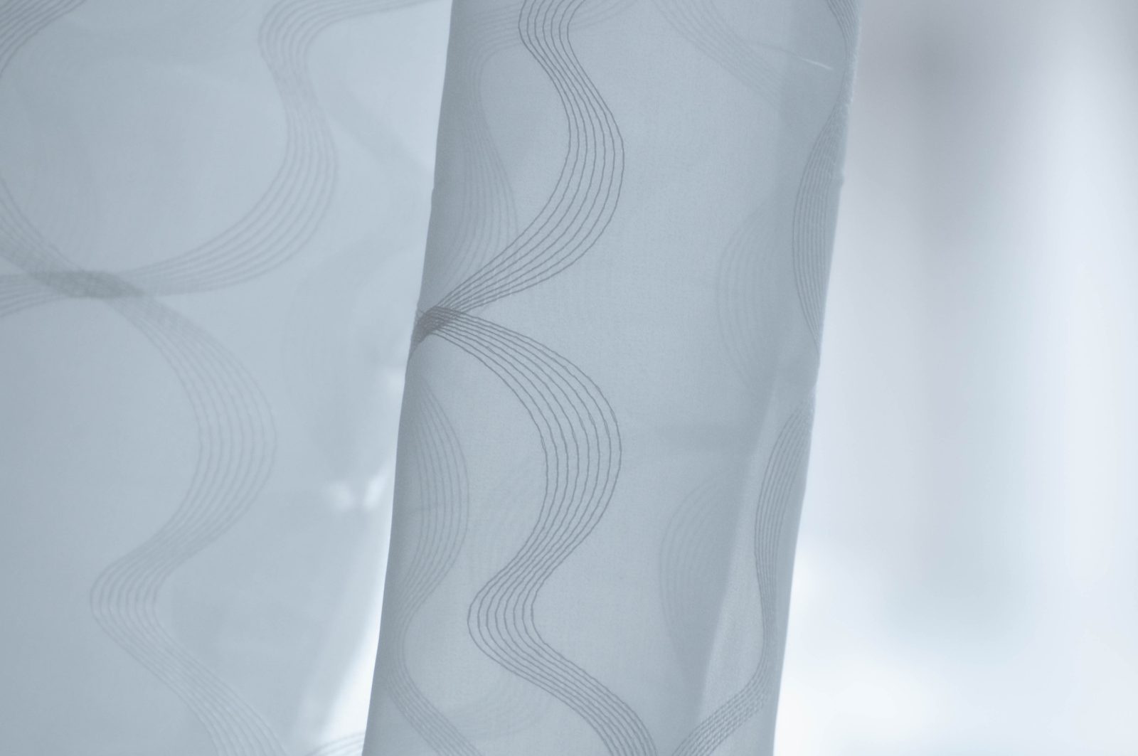 Pół-transparentna tkanina dekoracyjna o nowoczesnym, graficznym wzorze i matowej powierzchni. Sprawia wrażenie zmatowionej tafli szklanej z delikatnym ornamentem w formie zmultiplikowanych kółek. Rysunek jest tak onirycznie delikatny, że ruch tkaniny powoduje jego pojawianie się i znikanie. Tkanina możliwa do użycia dwustronnego. Wygląda bardzo naturalnie, posiadając przy tym praktyczne właściwości tkanin z włókien sztucznych, tj. dobrą sprężystość oraz możliwość prania w wodzie i czyszczenia chemicznego. Doskonale nadaje się do zastosowania na przesłony tradycyjne, ekrany lub rolety rzymskie. Występuje w ekonomicznej wysokości 295 cm.