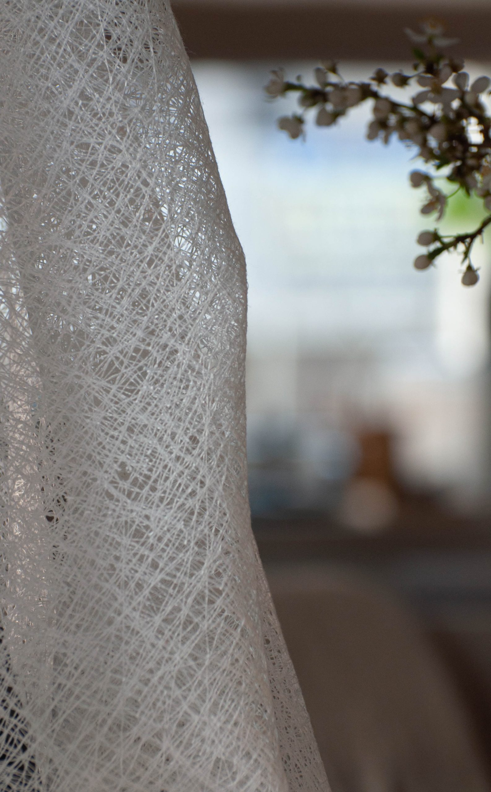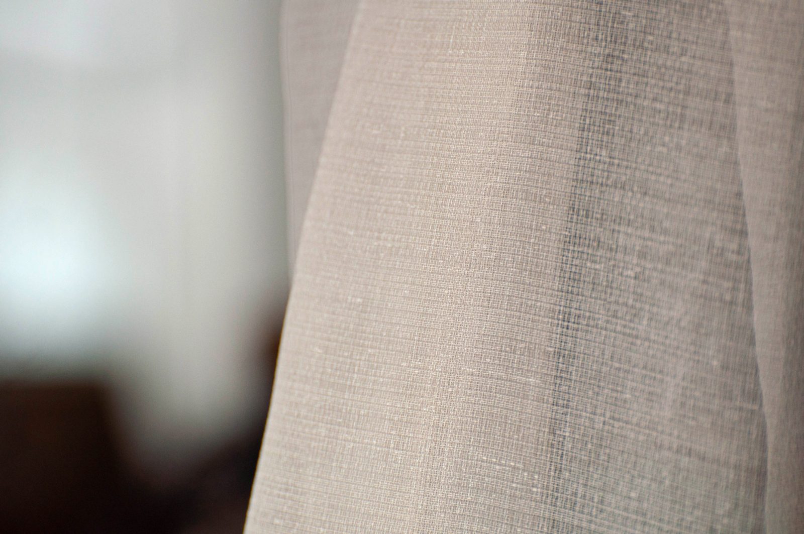 Kolor mlecznego kremu w transparentności powoduje przytulne mgliste rozproszenie ostrego światła. Wszystko zależy od mieszanek włókien, subtelności tonów i mikro tekstury na powierzchni tkaniny. Subtelne tony gładkich lnów i bawełen, naturalne kolory w teksturalnych mieszanych splotach, wydobywają się z każdą zmianą światła.