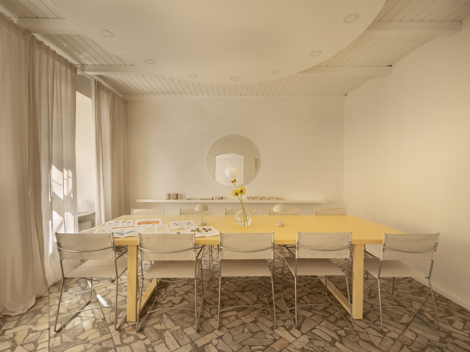 W ijo organizowane są warsztaty z różnych dziedzin, takich jak malarstwo, grafika, szkicowanie czy szydełkowanie. To miejsce, gdzie można rozwijać swoje pasje, zdobywać nowe umiejętności, nawiązywać znajomości i wymieniać się doświadczeniami. Neutralne, świetliste wnętrze z charakterystyczną lastrykową podłogą i przyjaznymi w formie meblami tworzy przyjazny nastrój i pozwala skoncentrować się na kreatywnych aktywnościach. Pół-transparentne zasłony odgradzają od ulicznego gwaru i pośpiechu, a jednocześnie nie blokują całkowicie naturalnego światła.