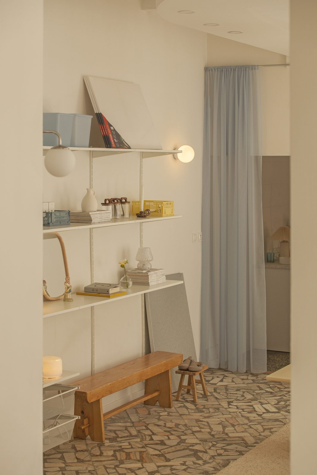 W ijo organizowane są warsztaty z różnych dziedzin, takich jak malarstwo, grafika, szkicowanie czy szydełkowanie. To miejsce, gdzie można rozwijać swoje pasje, zdobywać nowe umiejętności, nawiązywać znajomości i wymieniać się doświadczeniami. Neutralne, świetliste wnętrze z charakterystyczną lastrykową podłogą i przyjaznymi w formie meblami tworzy przyjazny nastrój i pozwala skoncentrować się na kreatywnych aktywnościach. Pół-transparentne zasłony odgradzają od ulicznego gwaru i pośpiechu, a jednocześnie nie blokują całkowicie naturalnego światła.