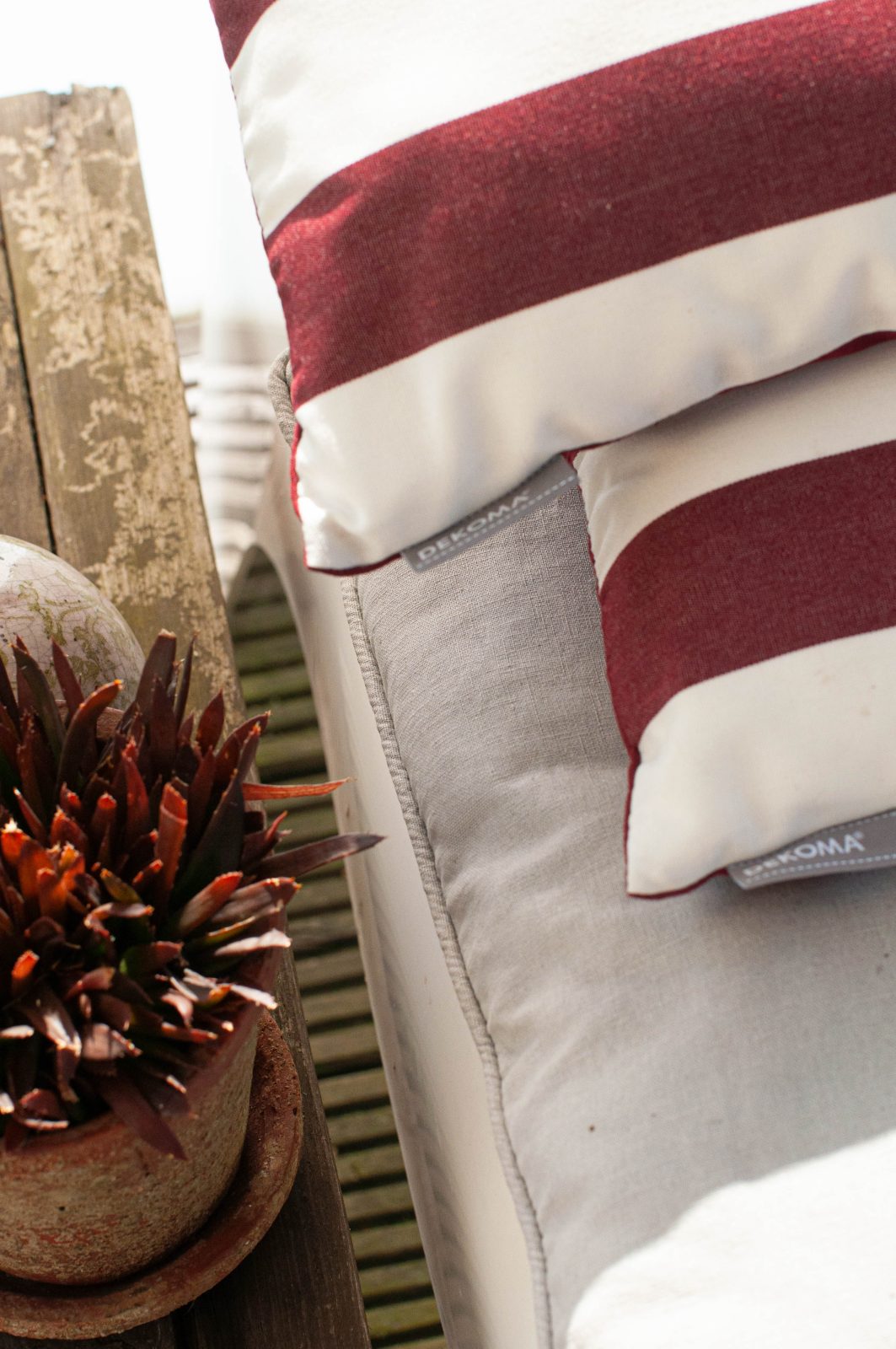 Wybierając materiały, szukajmy takich jakości, splotów, wzorów, które przypominają te, które stosujemy we wnętrzach naszych domów. Dawno już minął czas, kiedy outdoorowe tekstylia oznaczały sztywne, foliowane, niezwykle nieprzyjazne i niemiłe w dotyku, pozbawione znamion tkanin, nieciekawe kolorystycznie tworzywa. Dzisiejsza oferta to rozbudowane kolekcje wzorów, naturalnych splotów, żakardowych efektów, które pozwalają przebierać w proponowanych zestawieniach i tworzyć własne, personalizowane, atrakcyjne i wysmakowane, estetycznie kompozycje.