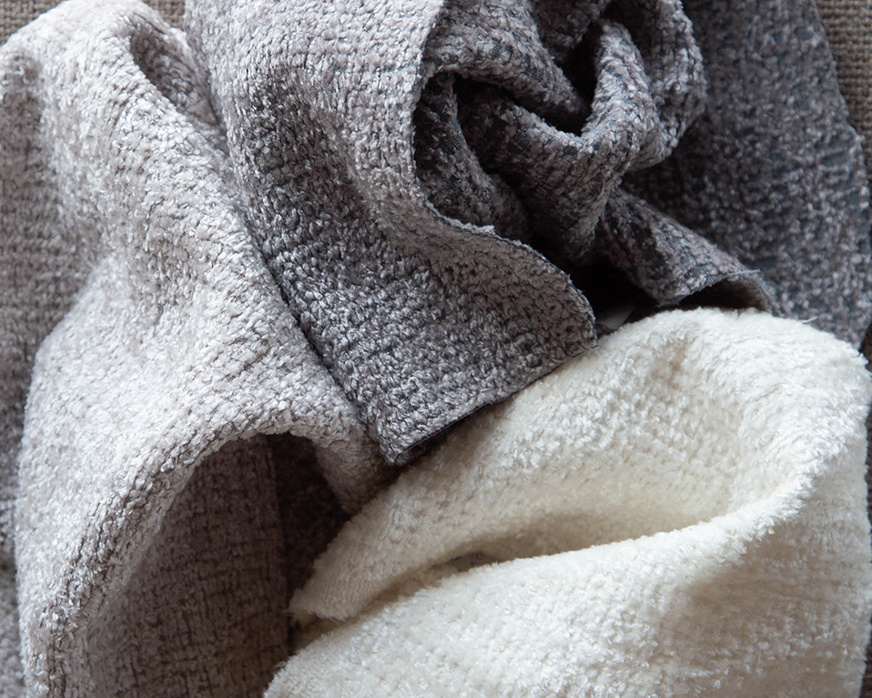 Wystarczy spojrzeć na zdjęcia teksturalnych tkanin i skupić uwagę na miękkich w odbiorze wzrokowym efektach boucle, przędzy szenilowych, czy trójwymiarowych splotów, żeby poczuć ich wypukłość, odczuć miękkość i giętkość tekstury. Wrażenia wzrokowe dostarczają tych samych informacji, jakie sama tkanina daje nam w kontakcie taktylnym. Zanurzanie palców w przytulnych tkaninach sprawia przyjemność, bo daje poczucie nie tylko termicznego komfortu, ale też zmysłowego bezpieczeństwa.