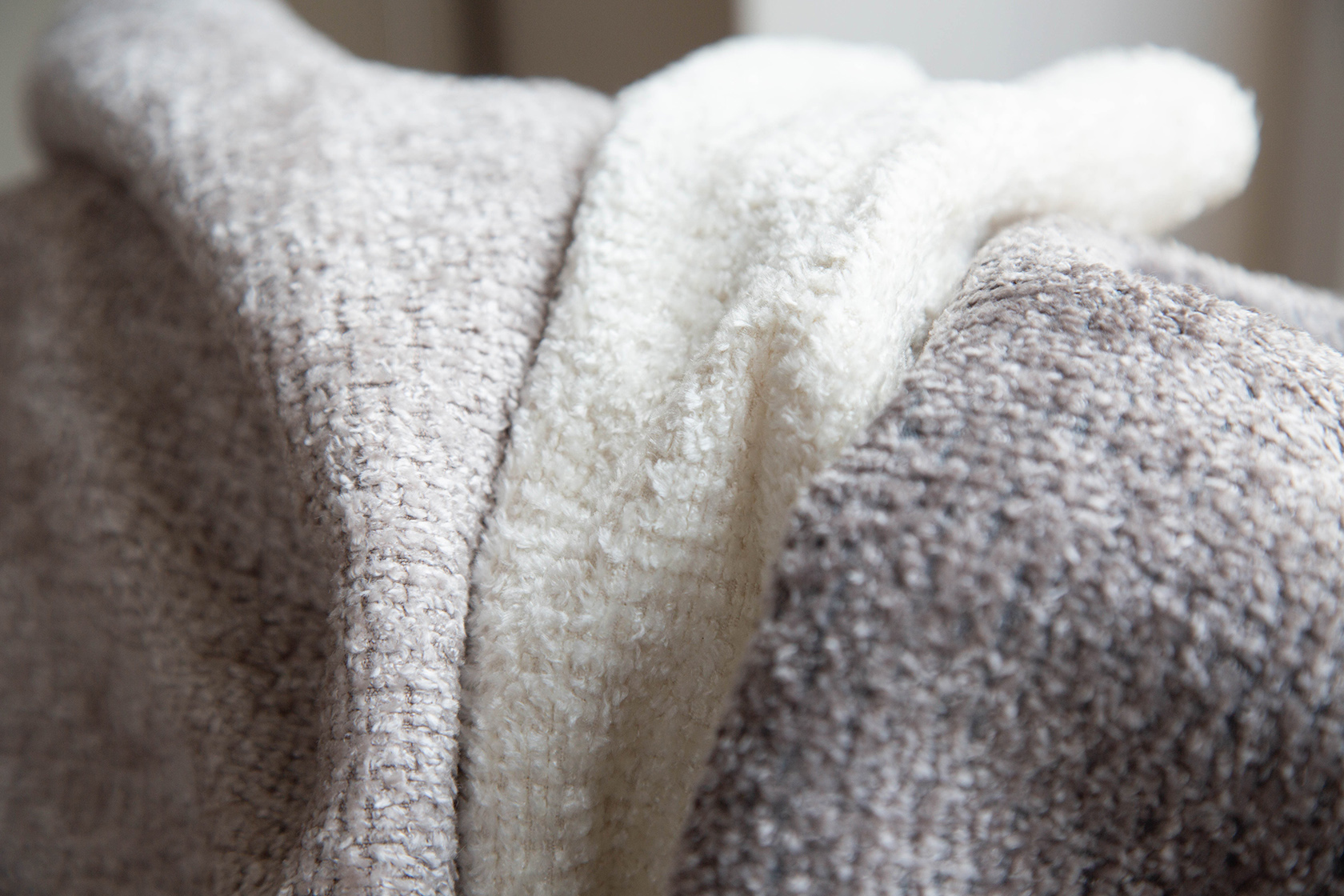 Wystarczy spojrzeć na zdjęcia teksturalnych tkanin i skupić uwagę na miękkich w odbiorze wzrokowym efektach boucle, przędzy szenilowych, czy trójwymiarowych splotów, żeby poczuć ich wypukłość, odczuć miękkość i giętkość tekstury. Wrażenia wzrokowe dostarczają tych samych informacji, jakie sama tkanina daje nam w kontakcie taktylnym. Zanurzanie palców w przytulnych tkaninach sprawia przyjemność, bo daje poczucie nie tylko termicznego komfortu, ale też zmysłowego bezpieczeństwa.