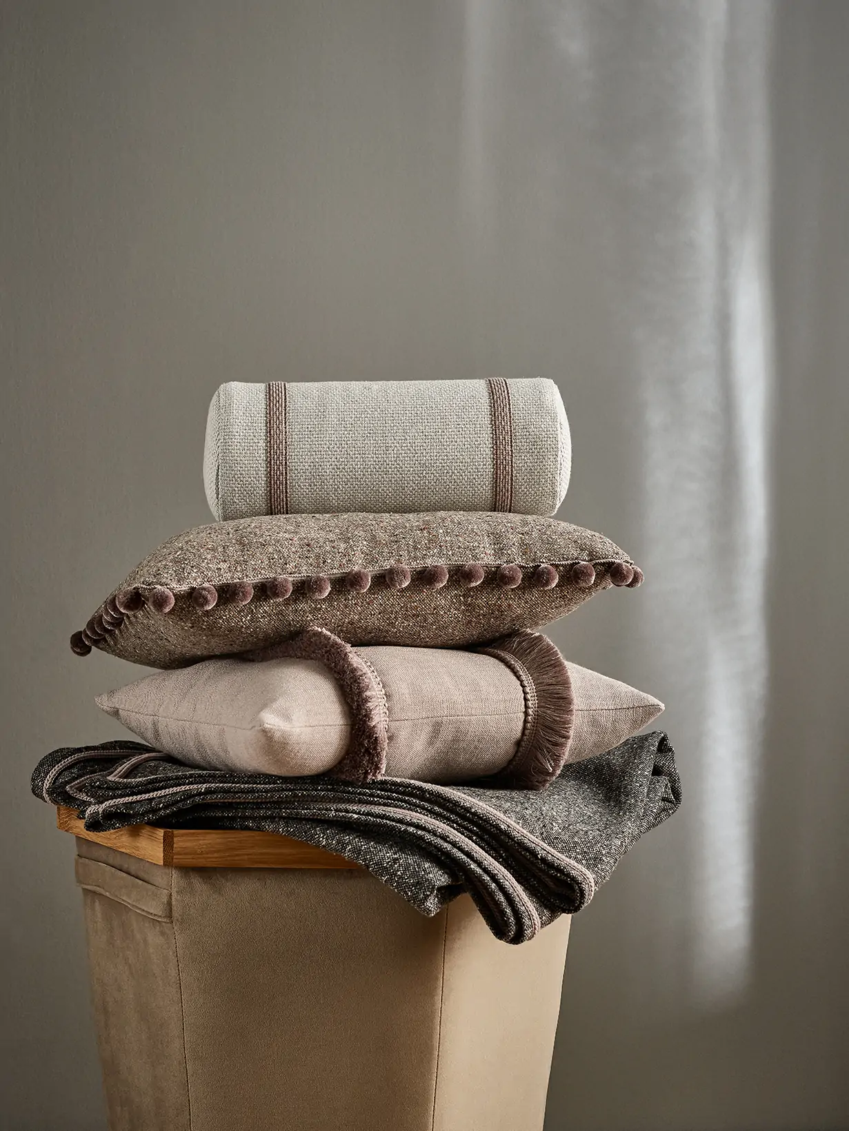 Frędzle z pomponami z kolekcji Naturals to tekstylny detal, który doda wdzięku meblom, poduszkom i zasłonom. Jako dodatek będą pasować przede wszystkim do tkanin naturalnych, ze względu na matowe wykończenie włókien i prostą formę. Sprawdzą się we wnętrzach w stylu prowansalskim i angielskim, wszędzie tam, gdzie inspiracją są sielskie, wiejskie posiadłości. Dostępne w 13 zróżnicowanych, głównie pastelowych kolorach. Mają 3,6 centymetra szerokości, w ich składzie znajdziemy wiskozę i len.