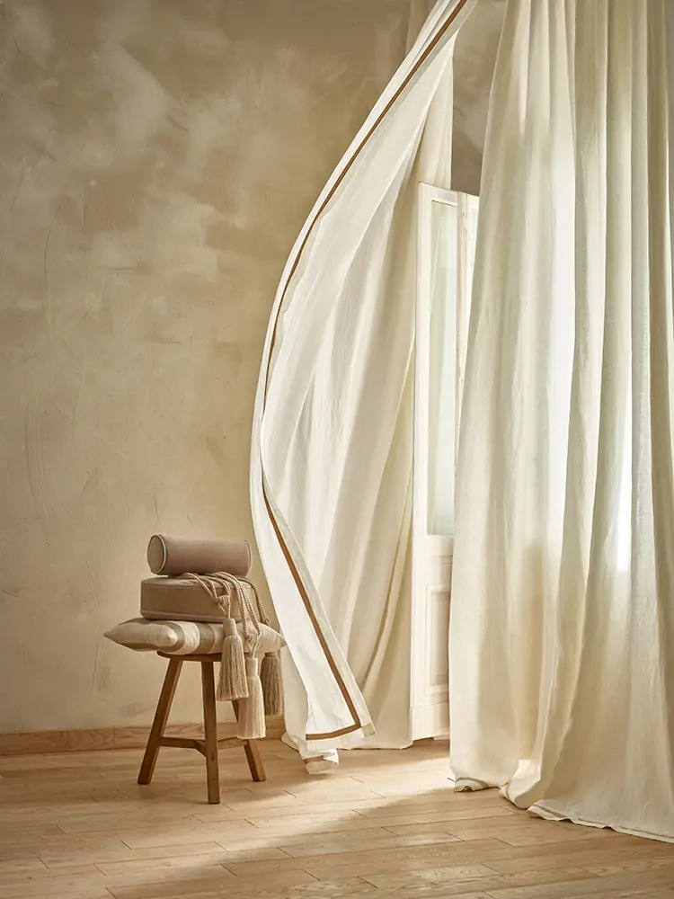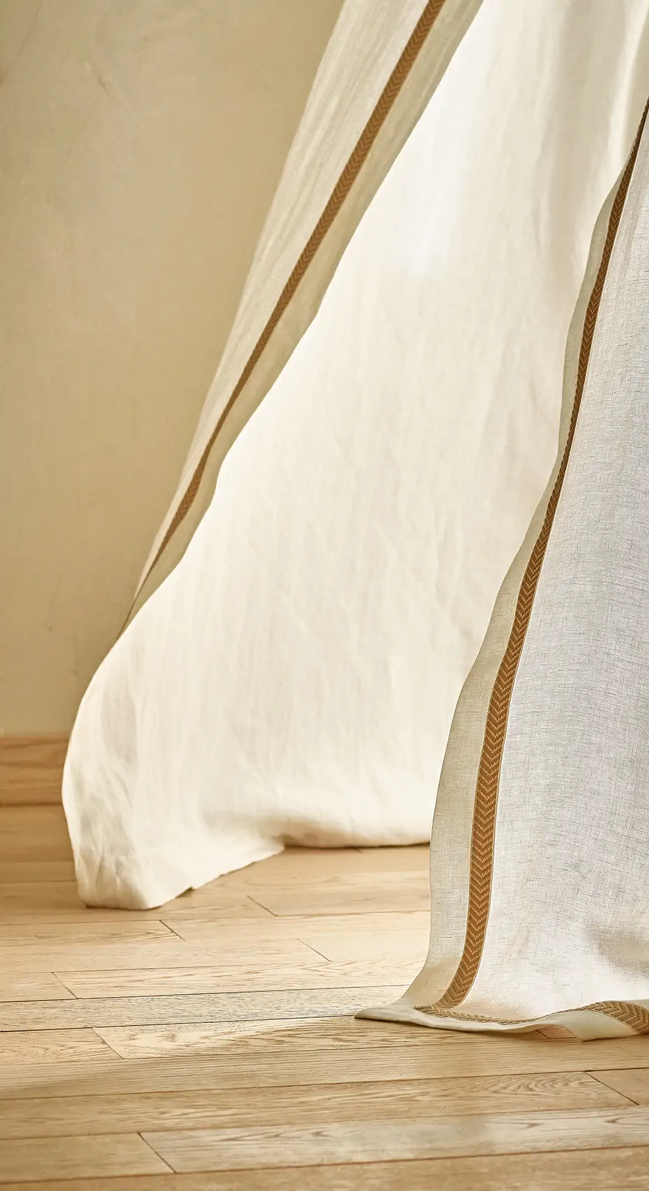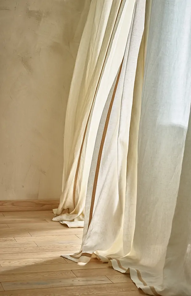 Taśma z kolekcji Naturals o wzorze przypominającym jodełkę francuską. Ma szerokość 2 cm. Została utkanaz bawełny, wiskozy i poliestru. Ze względu na matowe wykończenie włókien i prostą formę najlepiej komponuje się z naturalnymi tekstyliami. Znajdzie zastosowanie przede wszystkim we wnętrzach rustykalnych, ale także tych opartych na klasycznej elegancji. W ofercie jest do wyboru 13 delikatnych, głównie pastelowych kolorów. W aranżacji wnętrza pasuje dotaśmy ZB.0156, wprowadzając element gry skalą wzoru.