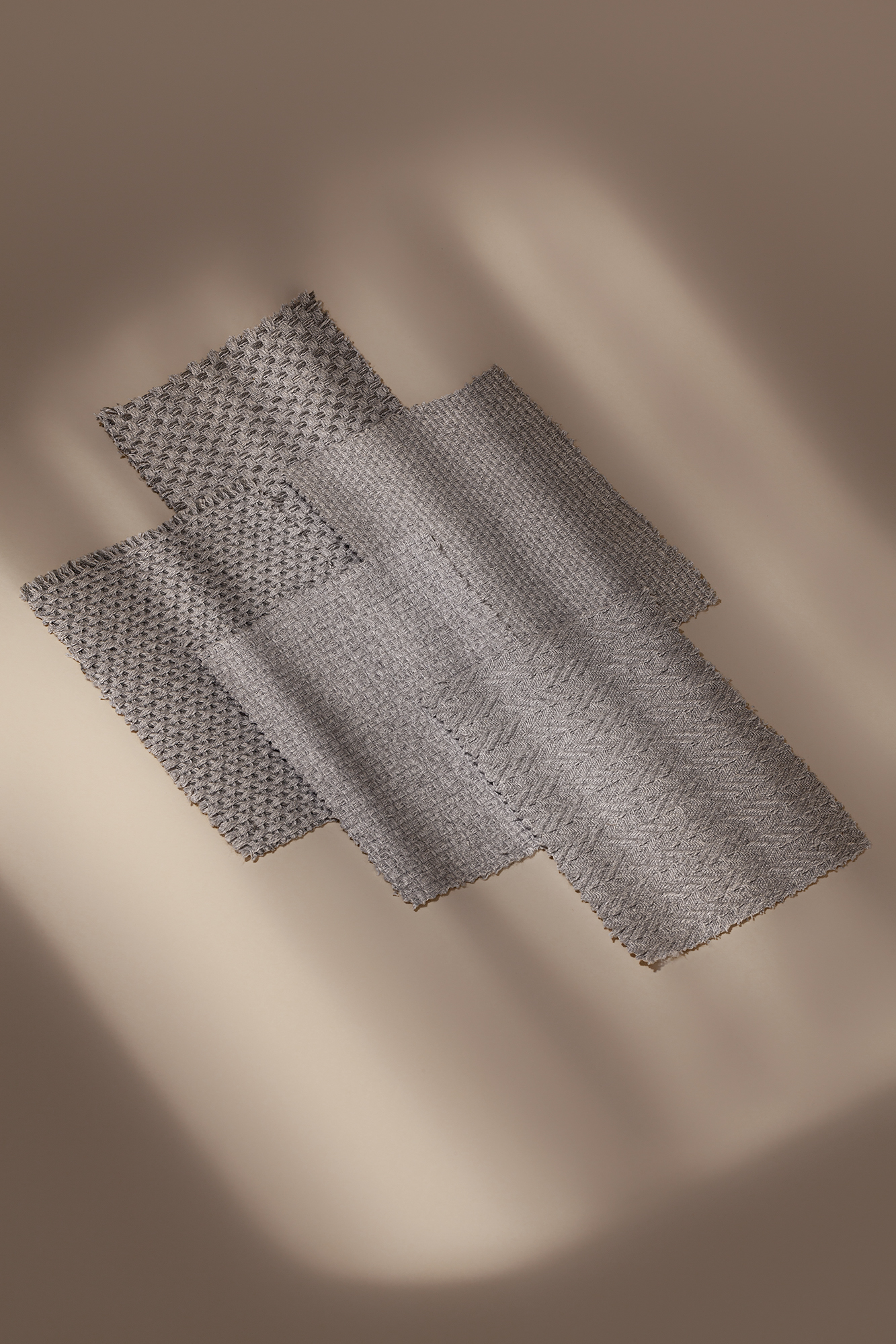 Garda состоит из 5 тканей из 100% хлопка: Mura, Limone, Salo, Pieve и Garda. Выразительные узоры отличаются фактурными переплетениями. Они доступны в 7 приглушенных оттенках, отсылающих к природе и подчеркивающих эстетические качества тканей. Различные оттенки серого: от серебристого до графитового, теплый бежевый и коричневый, а также классический белый и чёрный -всё это подчеркивает характер дизайнов коллекции. Ткани можно комбинировать в дизайне интерьера и мебели для получения интересных сочетаний фактур.