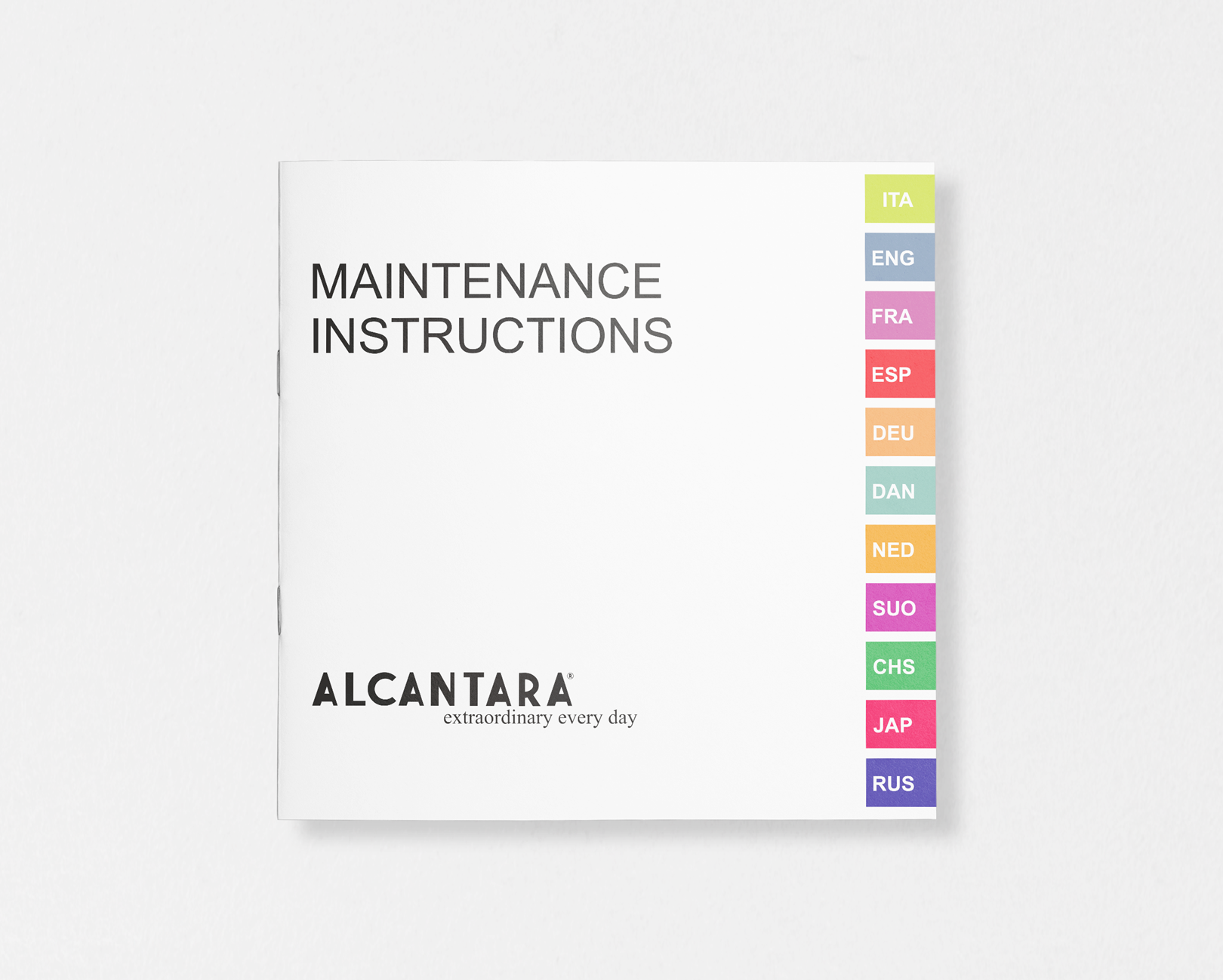 Сертификат и инструкция по очистке упакованы в полупрозрачный конверт, который мы добавляем к каждому заказу Alcantara.