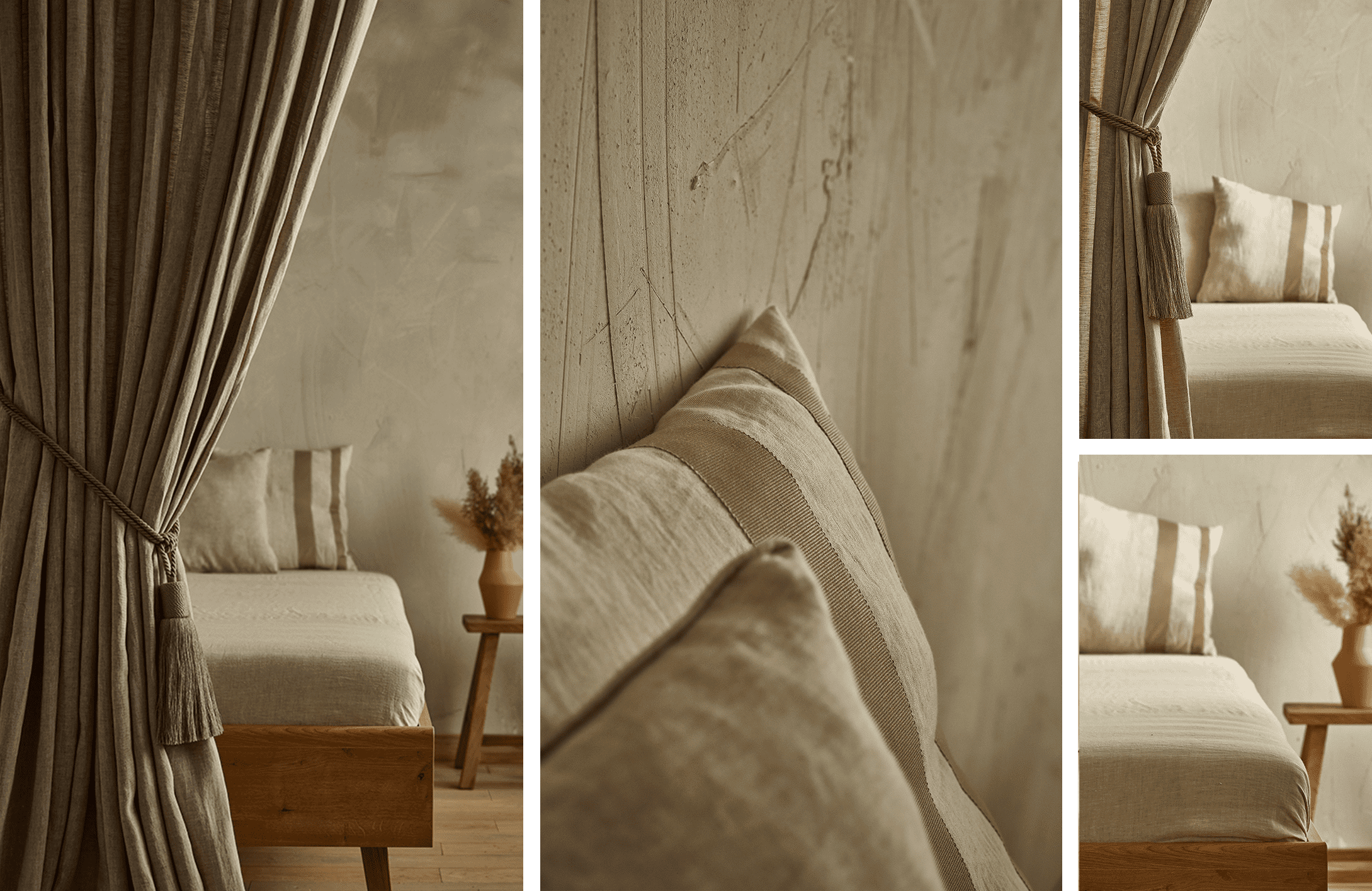 В изделиях коллекции Naturals преобладают натуральные льняные хлопковые волокна и полусинтетическая вискоза. Именно поэтому они прекрасно сочетаются с натуральными декоративными и мебельными тканями. Их объединяет матовая отделка волокон и приглушенные цвета.