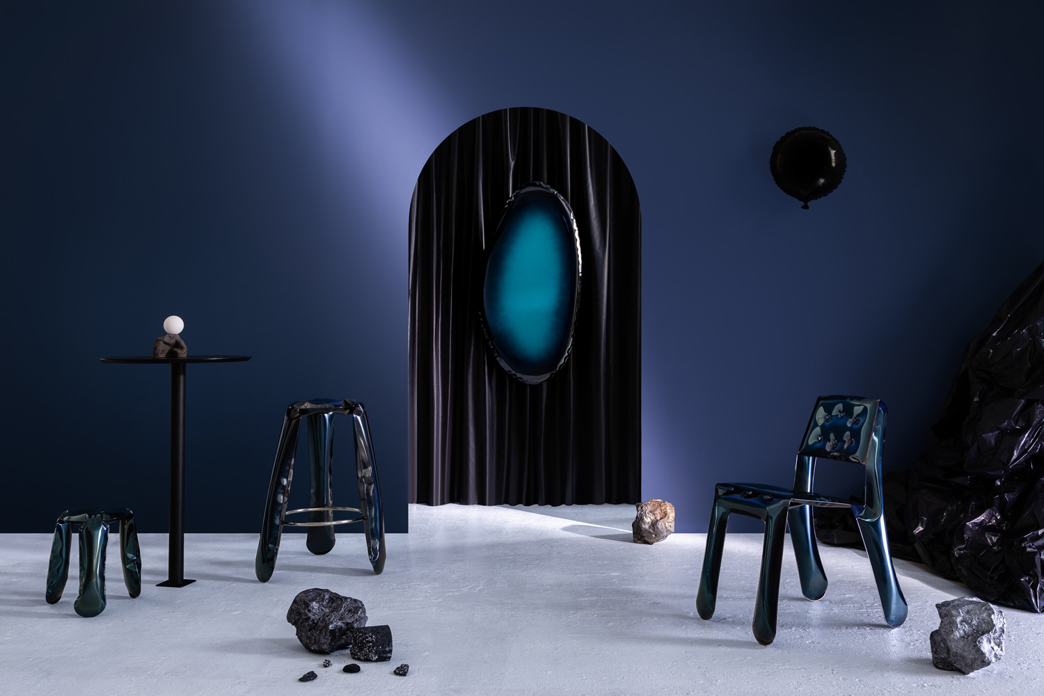 Металлические зеркала и сиденья из коллекции Heat, Gradient и Transitions, созданные Оскаром Зиетой, вдохновили Веронику Трояновскую и Улу Качмарек из Studio Mleko на создание фантастических космических миров в серии фотографий, основанных на идеях строительства и деконструкции.