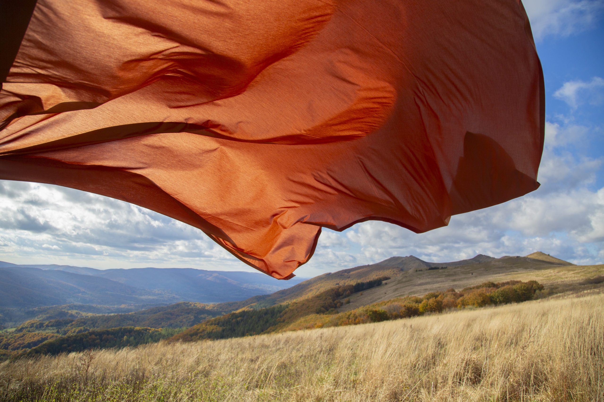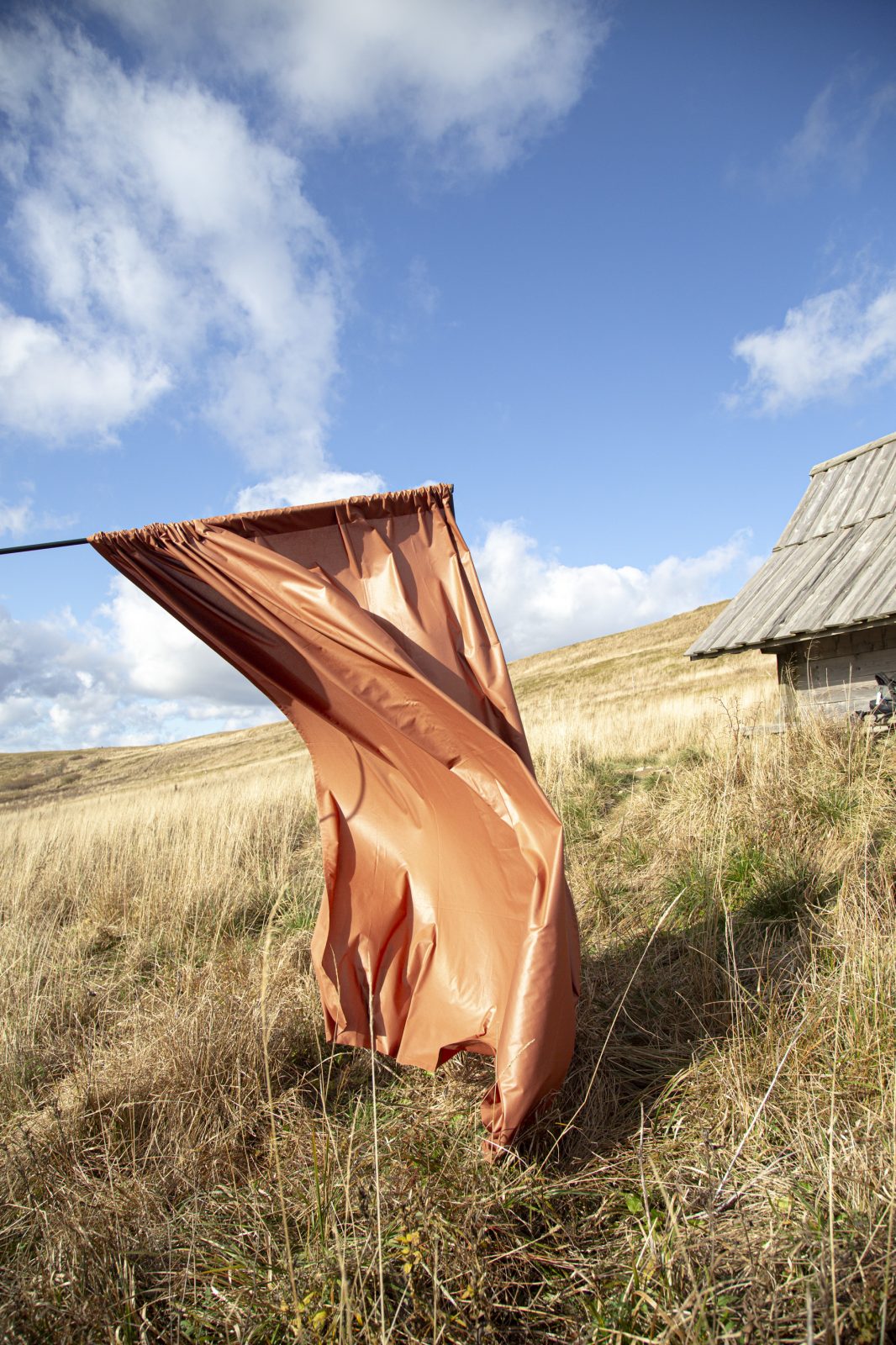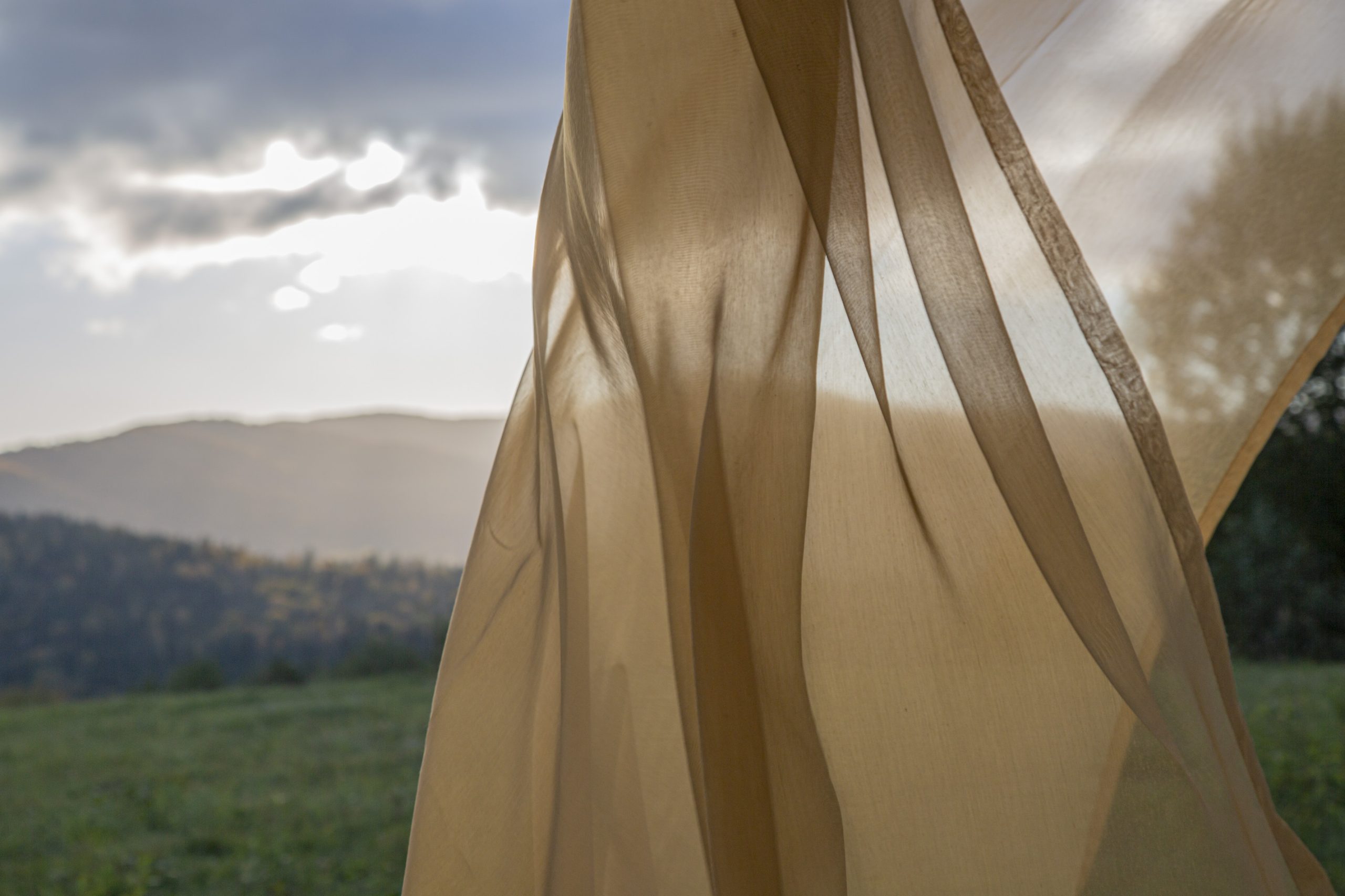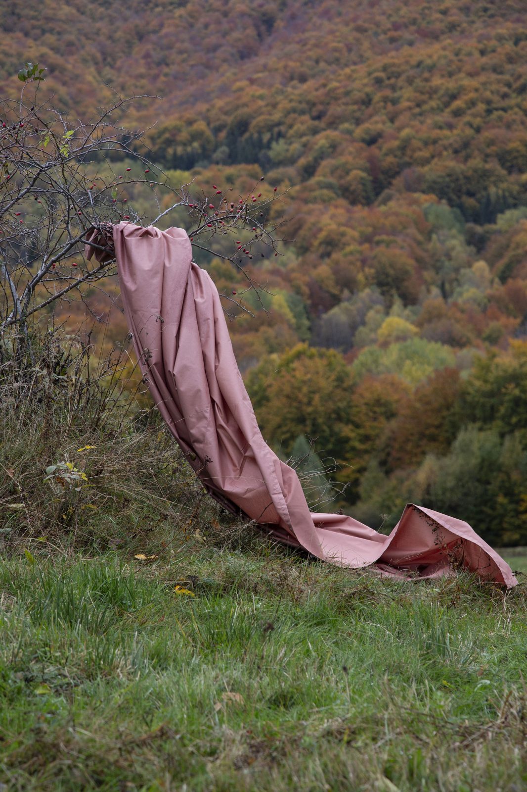 Осенние дни в горном пейзаже могут удивить изменчивостью ауры несколько раз в суточном ритме. Так было и в этот раз. Тишина в контрасте с сильными порывами ветра, солнце яркое и резкое, слабеющее и уменьшающееся до неузнаваемости на своем пути к заходу.Эти очевидные изменения запечатлелись в памяти кадров, в которых эластичные и гибкие ткани трансформировались под воздействием погоды.
