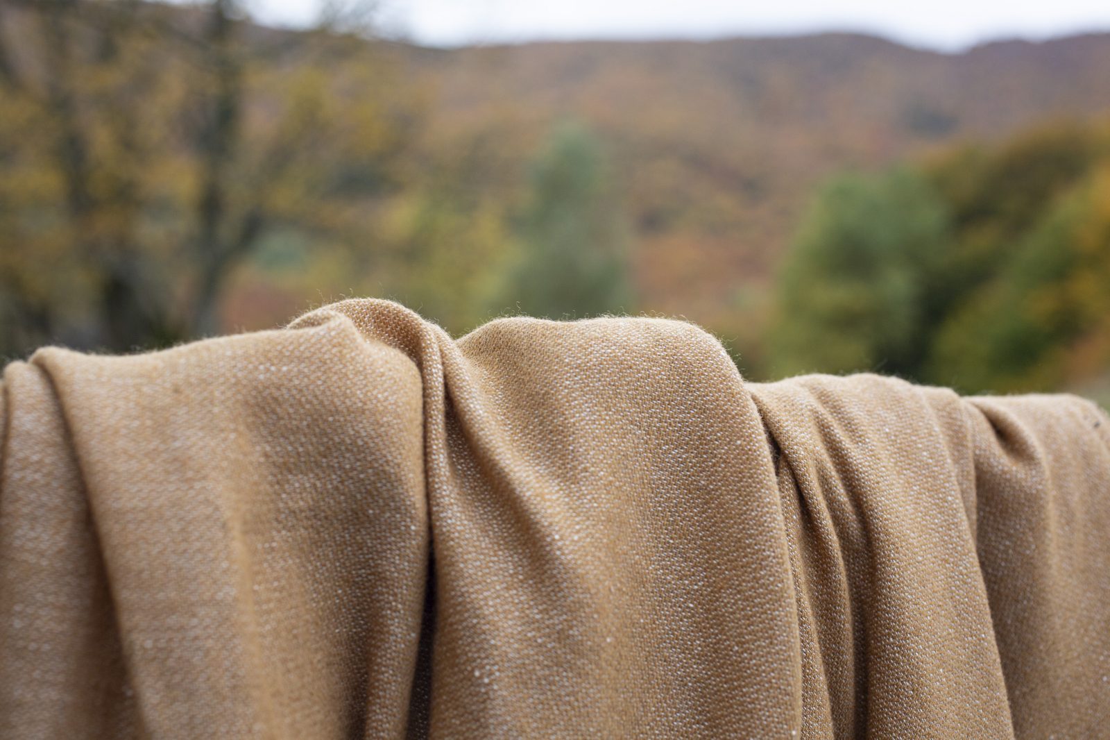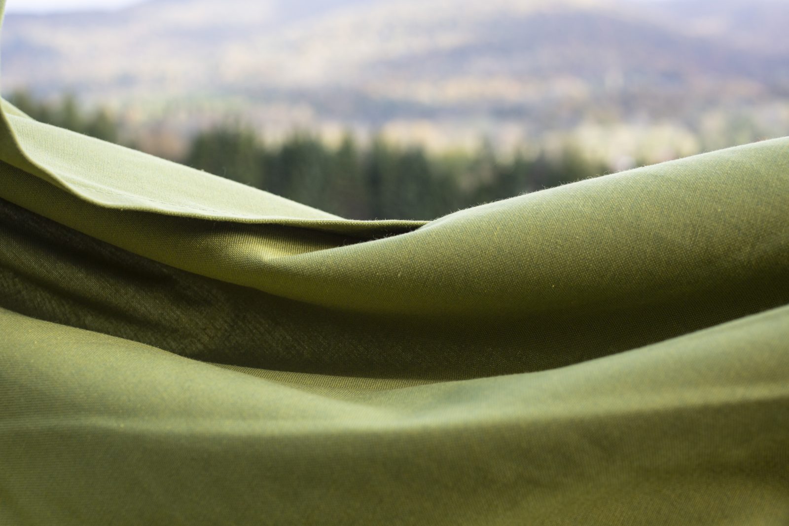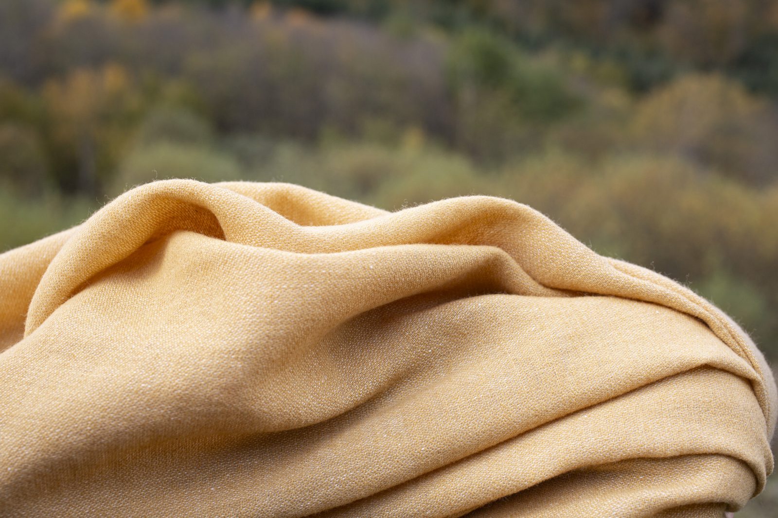 Воздух определенно её стихия. Ткань оживает в нём, показывает своё самое прекрасное лицо, меняет цвет и интенсивность, делая его неотразимым перед своим очарованием. Прозрачность гор служит ей лучше всего. В своей силе ткань переливается и смягчается, пока не кажется, что исчезает в пространстве. Она становится незаметной, даже прозрачной. В отблесках света и воздуха можно обнаружить тонкие, иногда даже микроскопические, линии основы и утка в её деликатных переплетениях.