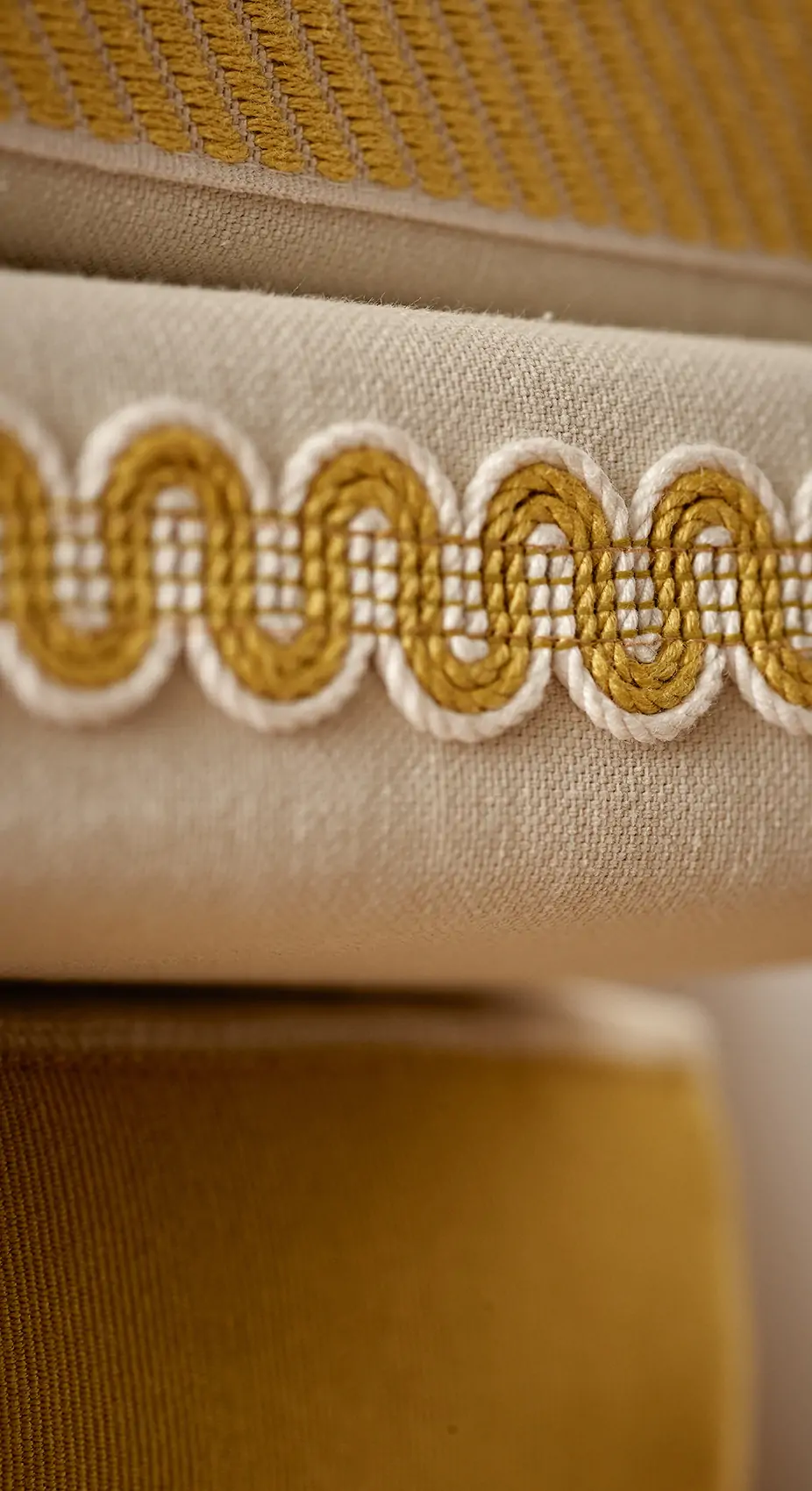 Лента из коллекции Naturals с характерным волнообразным рисунком, подчеркнутым сочетанием двух цветов. Она соткана из льна, с небольшой примесью полиэстера. Ширина 2,4 см. Доступена в 13 приглушенных, преимущественно пастельных тонах. Простая и элегантная форма, а также матовая поверхность волокон идеально сочетаются с натуральными тканями.