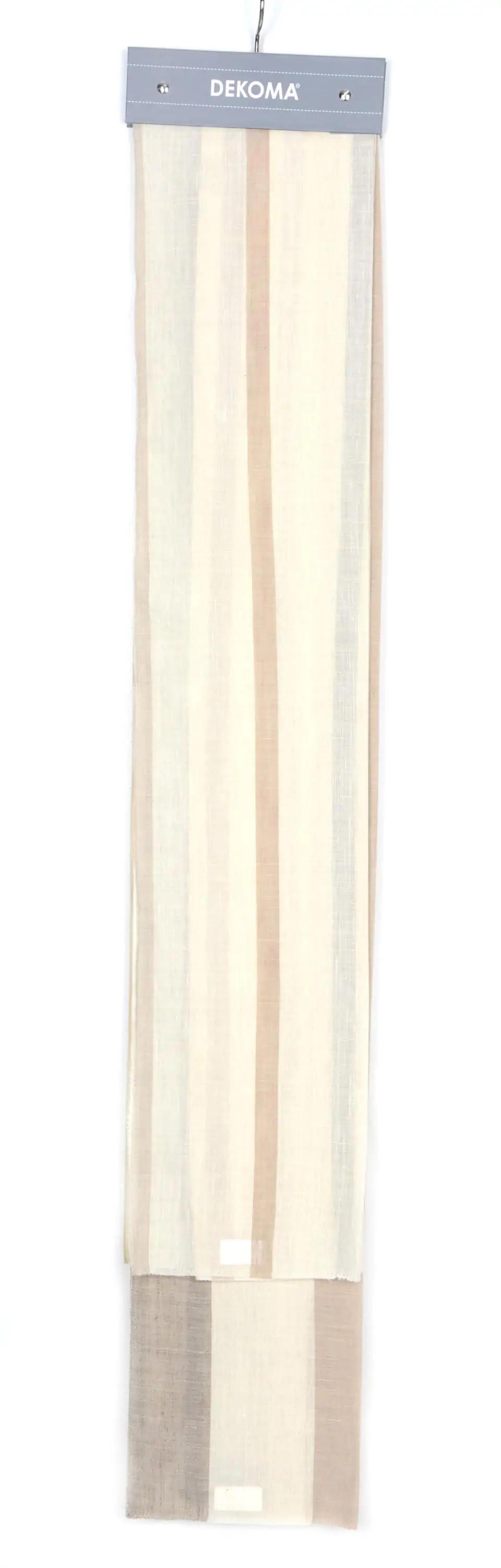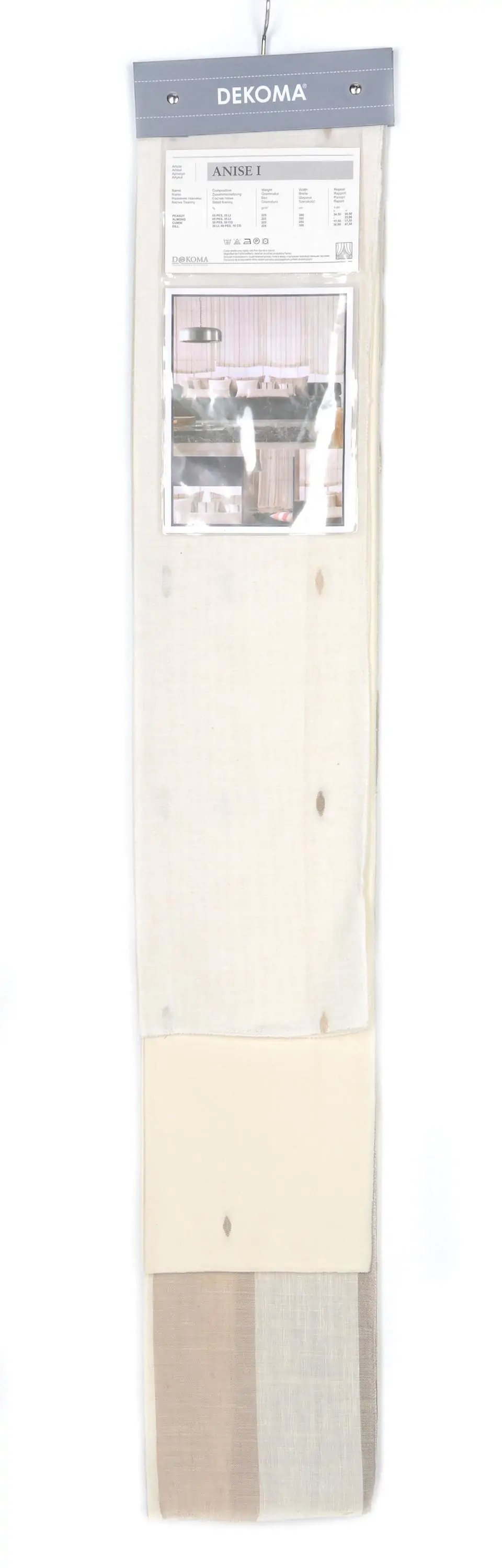 Półprzeźroczysta tkanina dekoracyjna o naturalnym wyglądzie. Ozdobiona jest wzorem pionowych pasów w stonowanych kolorach: beżów i brązów. Do jej zalet należy ekonomiczna wysokość 300 cm. Doskonale nadaje się na zasłony i rolety rzymskie do wnętrz tradycyjnych i nowoczesnych. Koordynuje z tkaninami Peanut i gładkim Anise. Produkt polecany na półprzezroczyste zasłony i rolety rzymskie. Do prania w kąpieli wodnej 30oC.