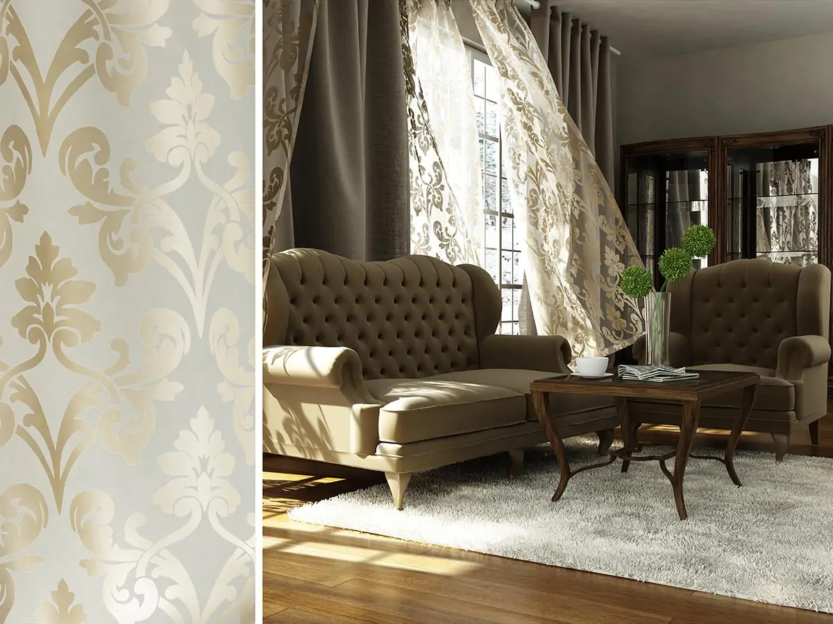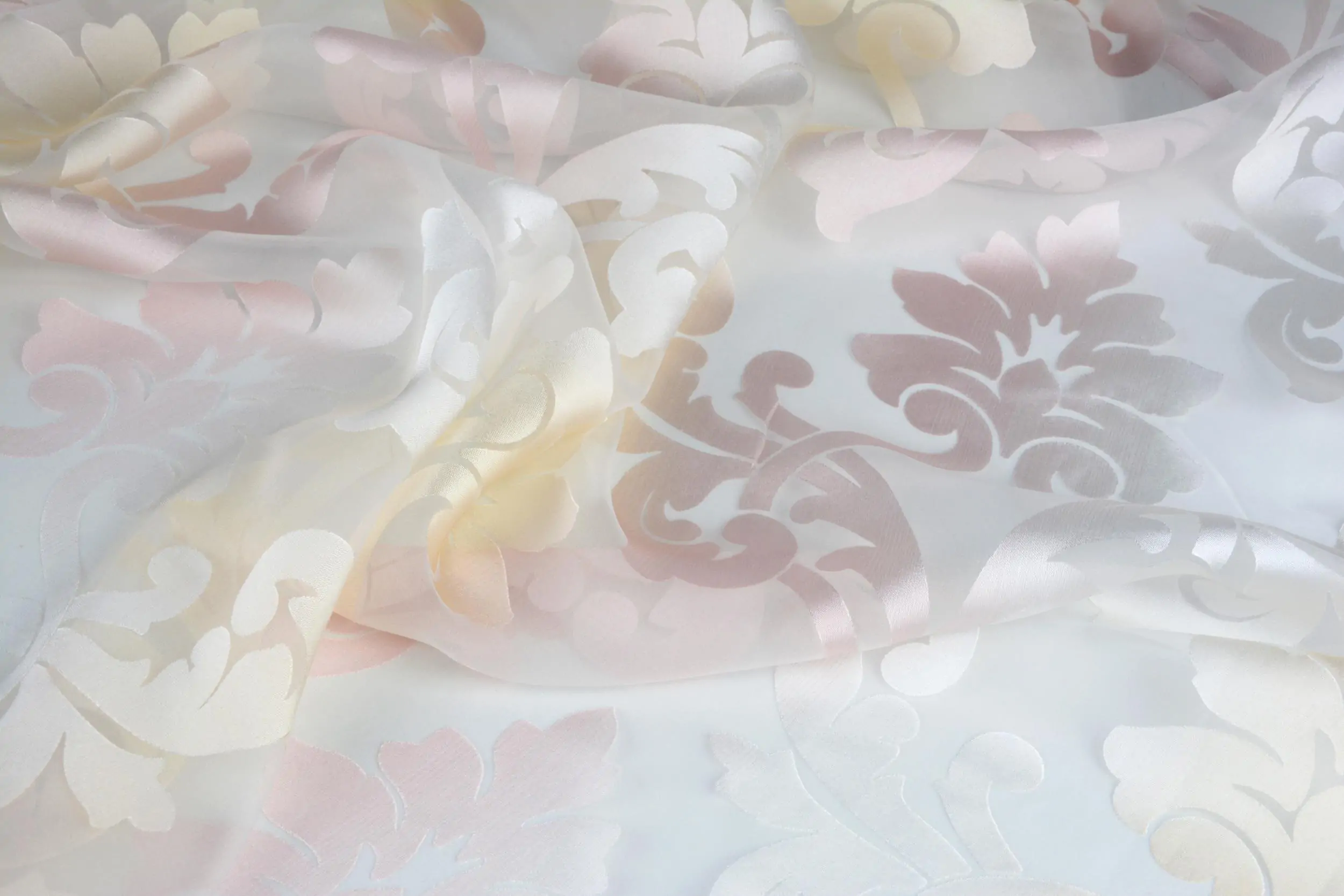 Delikatna tkanina dekoracyjna z wyrazistym arabeskowym wzorem na wytrawionym, transparentnym tle. Dzięki kolorystycznemu zróżnicowaniu motyw staje się bardziej przestrzenny i zmienia się zależnie od padającego na niego światła. Jej zaletą jest ekonomiczna wysokość 300 cm. Polecamy użycie Azury na firany, ekrany lub rolety rzymskie. Wśród kolorów Romano można znaleźć gładkie koordynaty do Azury.