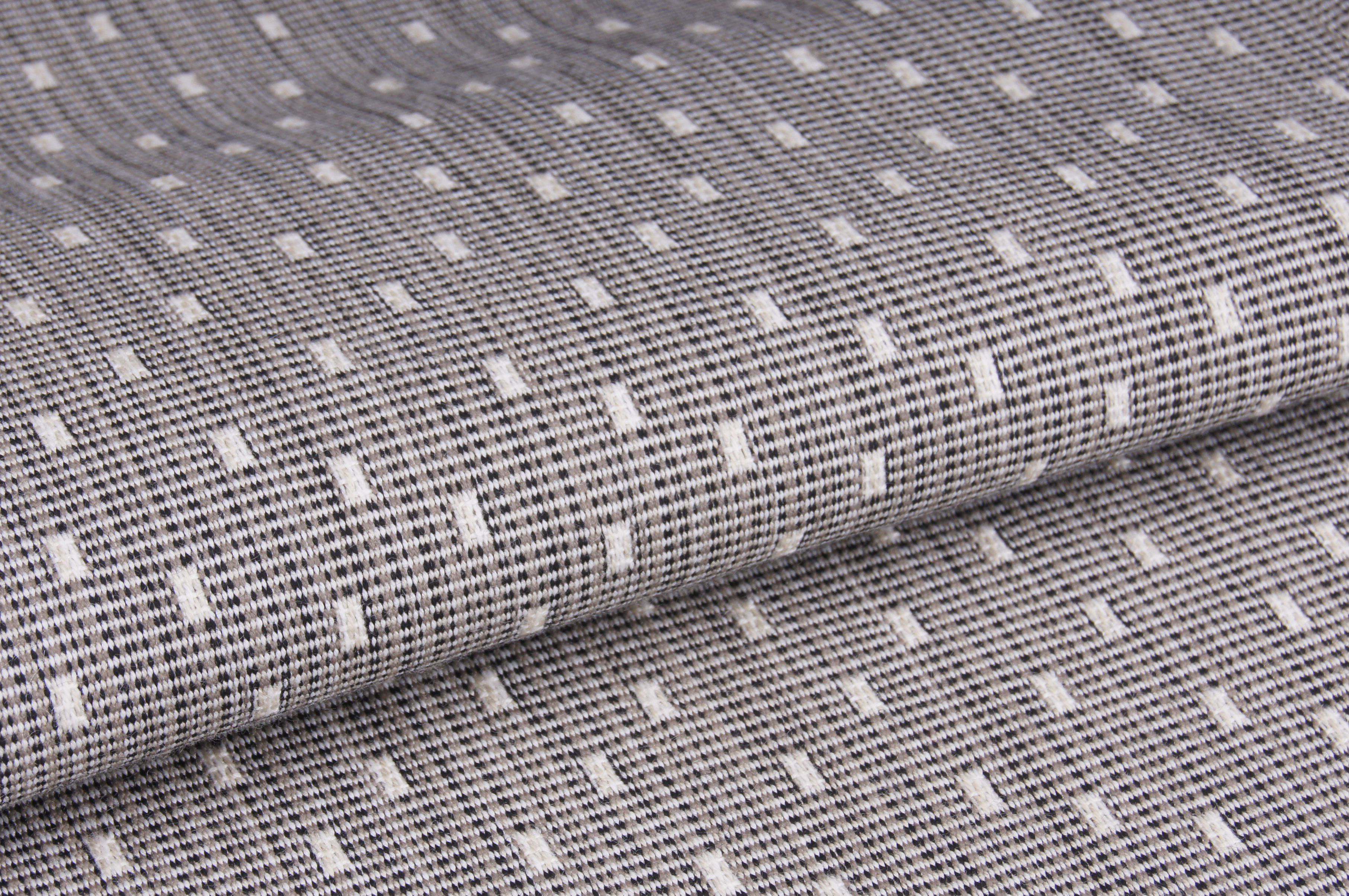 Tkanina z geometrycznym, niedużym wzorem na melanżowym tle. Doskonała propozycja do zastosowania na meble i dekoracje wewnątrz i na zewnątrz. Tkaniny UV Pro posiadają ochronę przed promieniami słonecznymi. Zalety techniczne pozwalają na zastosowanie ich na wolnym powietrzu: na meble ogrodowe, basenowe, leżaki, parasole przeciwsłoneczne, żaluzje, markizy, meble jachtowe. Posiadają certyfikat OEKO-TEX® Standard 100 dający gwarancję produktu bezpiecznego w kontakcie z ludzką skórą. Produkt na zamówienie w minimalnej ilości 0,5 metra.