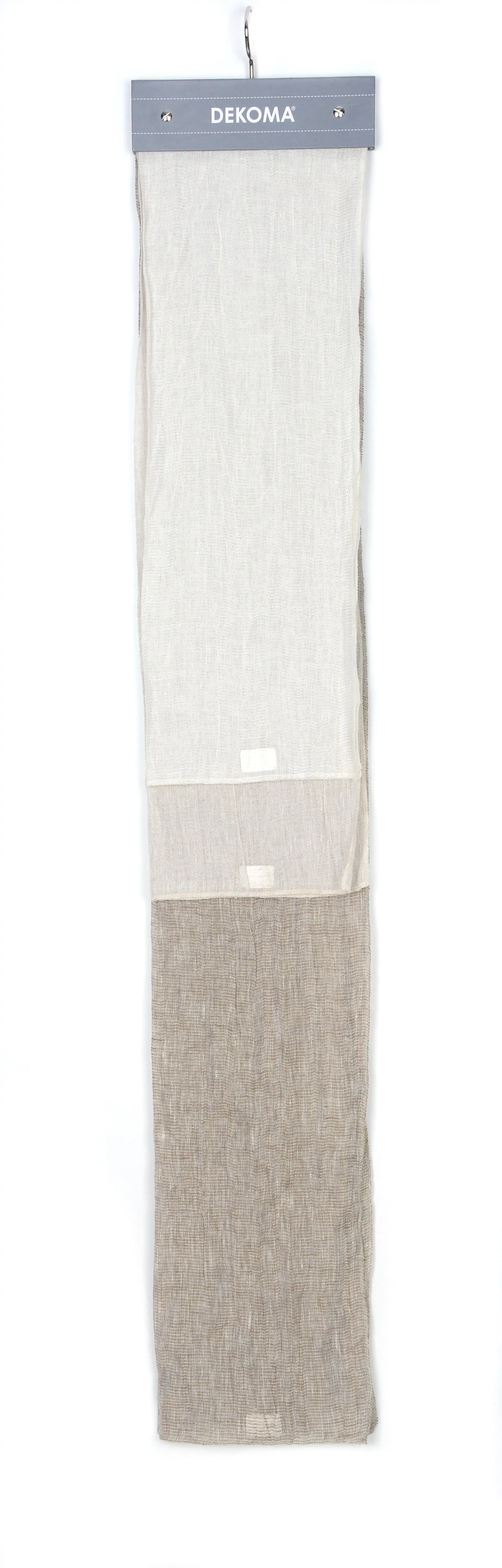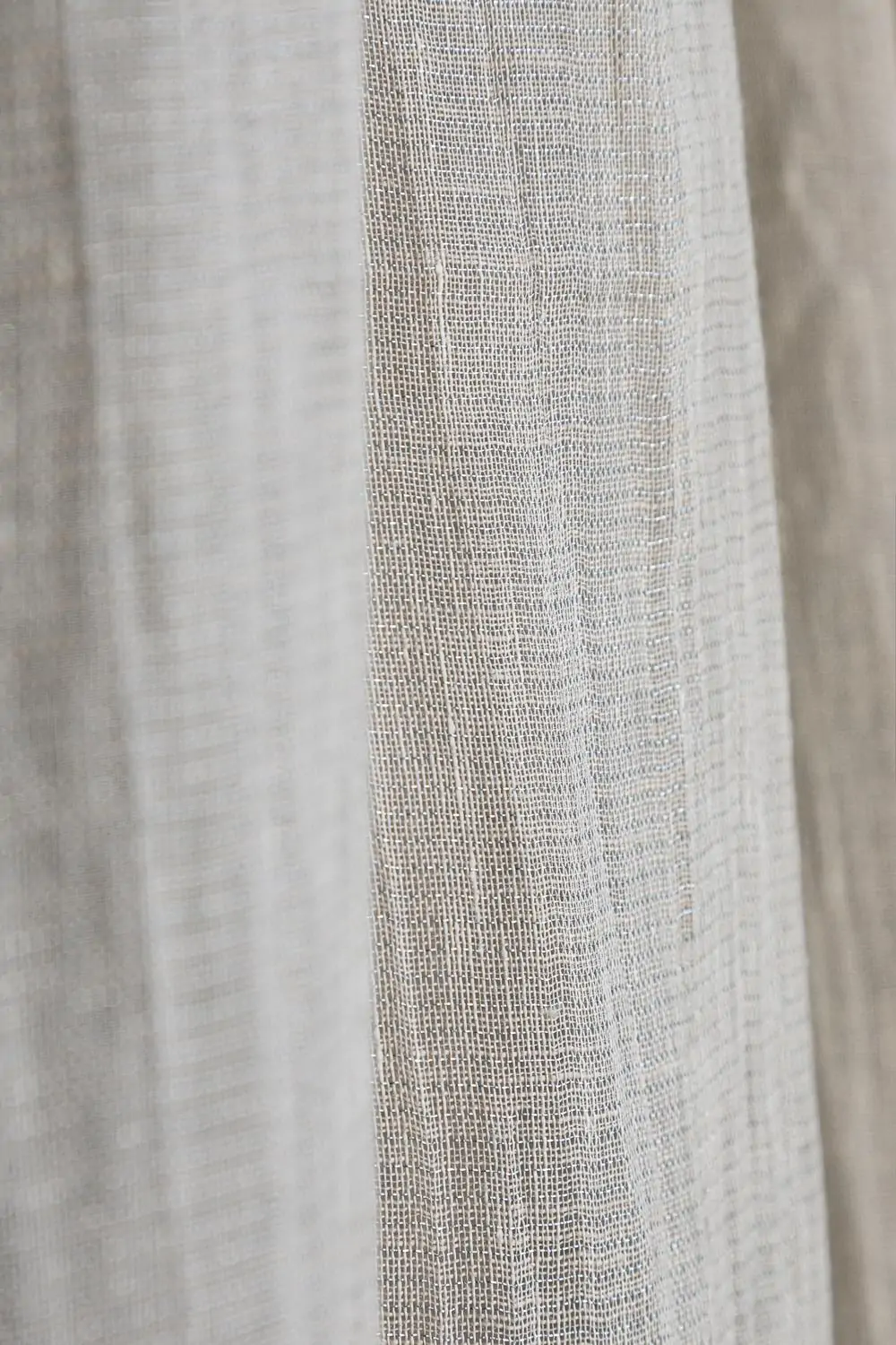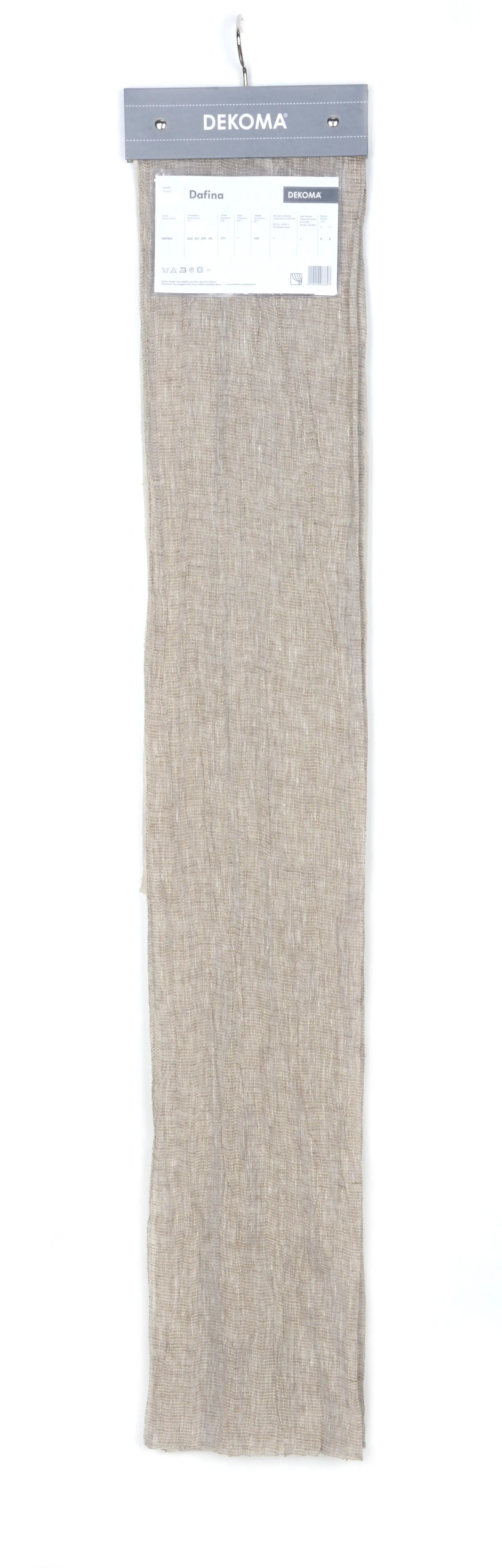 Dafina to kreszowana tkanina dekoracyjna z błyszczącą nitką. Dzięki połączeniu metalicznej przędzy z lnianą bazą, jest to produkt unikalny. Dafina dostępna jest w naturalnej palecie trzech kolorów. Dostępna w szerokości 275 cm. Polecana na dekoracje okien: rolety rzymskie, firany.