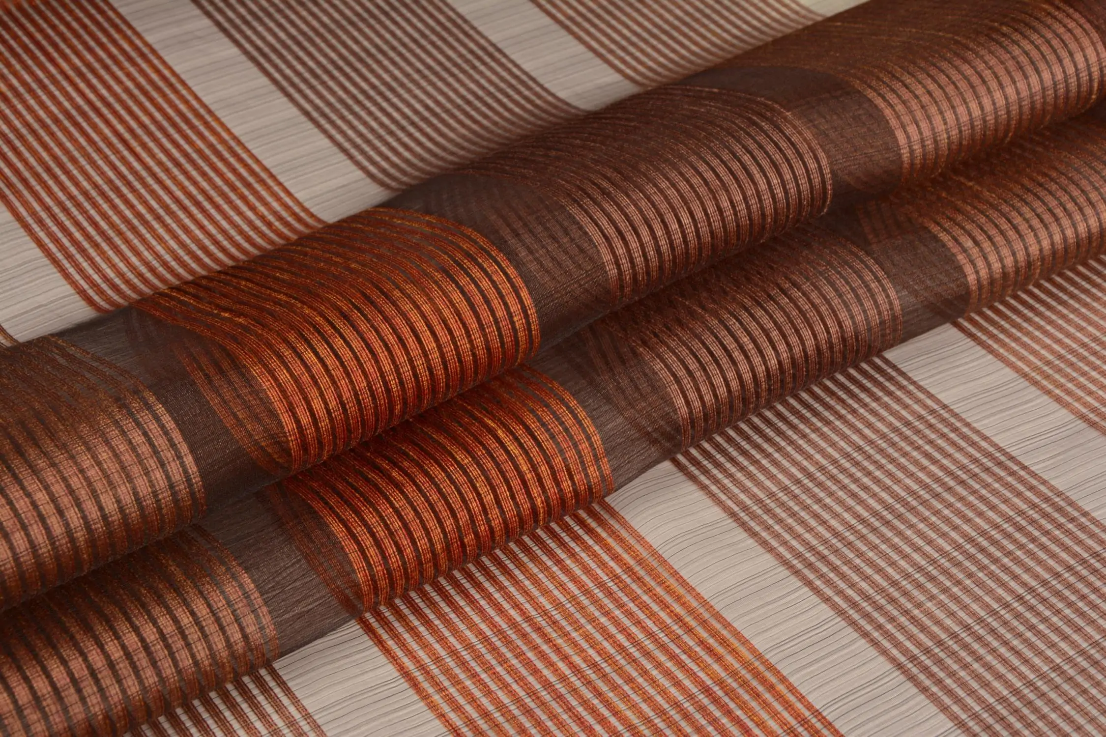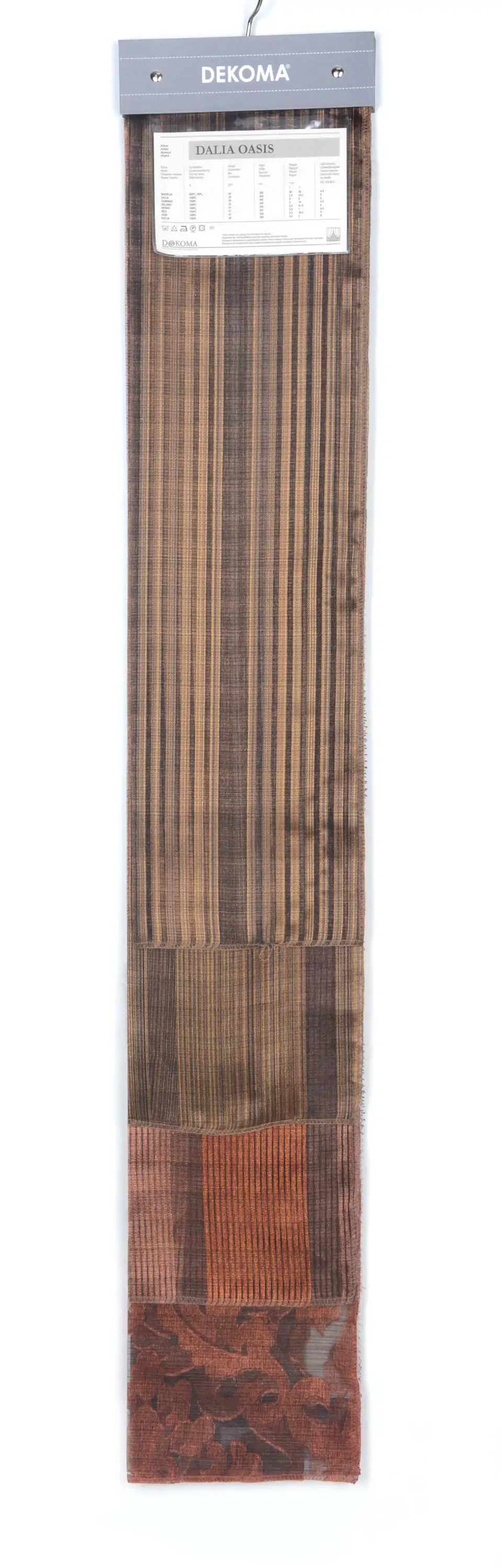 Transparentna i lekka tkanina dekoracyjna w szerokie pasy z prążków. Ma lekki, elegancki połysk. Doskonała na rolety rzymskie lub zwiewne firany. Ma ekonomiczną wysokość ok.300 cm. Łatwa w konserwacji, do prania w kąpieli wodnej 30oC. Wraz z tkaninami Damiana, Hadley, Hani, Henna, Katja tworzy kolekcję Dalia. Cała kolekcja dostępna w ciepłej, jesiennej gamie kolorów. Inne kolekcje tkanin transparentnych to Bianco Fresco i Crema Classic.