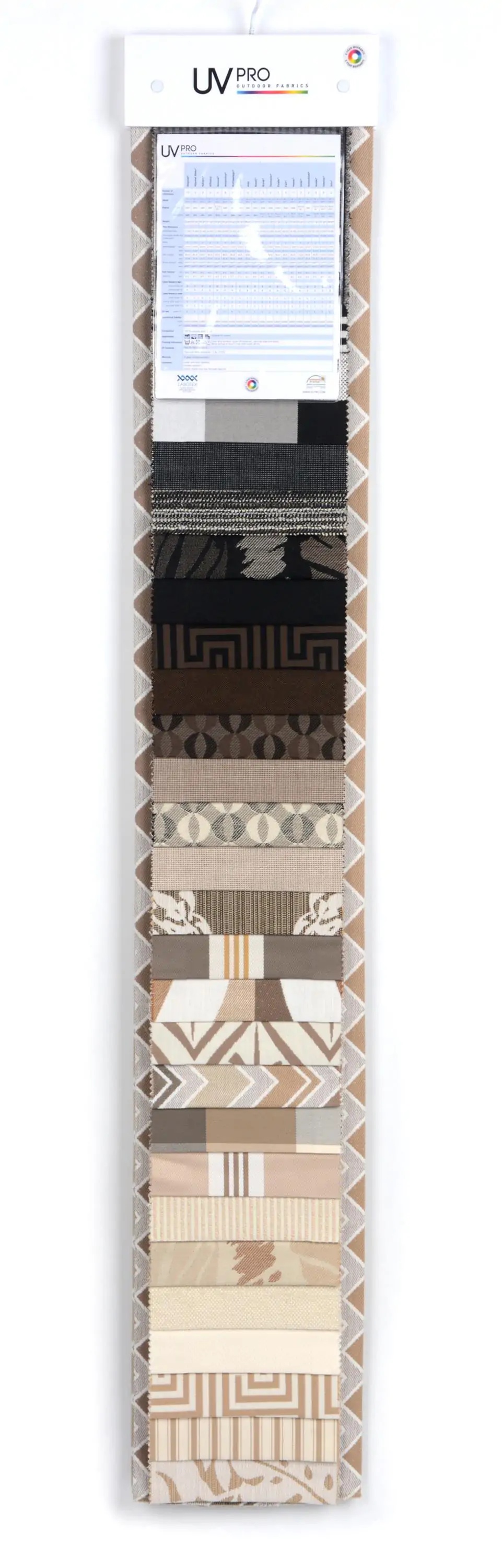 Tkanina w graficzny, zygzakowy wzór, dostępna w trzech zestawach kolorystycznych. Tkaniny UV Pro posiadają ochronę przed promieniami słonecznymi . Zalety techniczne pozwalają na zastosowanie ich na wolnym powietrzu: na meble ogrodowe, basenowe, leżaki, parasole przeciwsłoneczne, żaluzje, markizy, meble jachtowe. Posiadają certyfikat OEKO-TEX® Standard 100 dający gwarancję produktu bezpiecznego w kontakcie z ludzką skórą. Produkt na zamówienie w minimalnej ilości 0,5 metra.